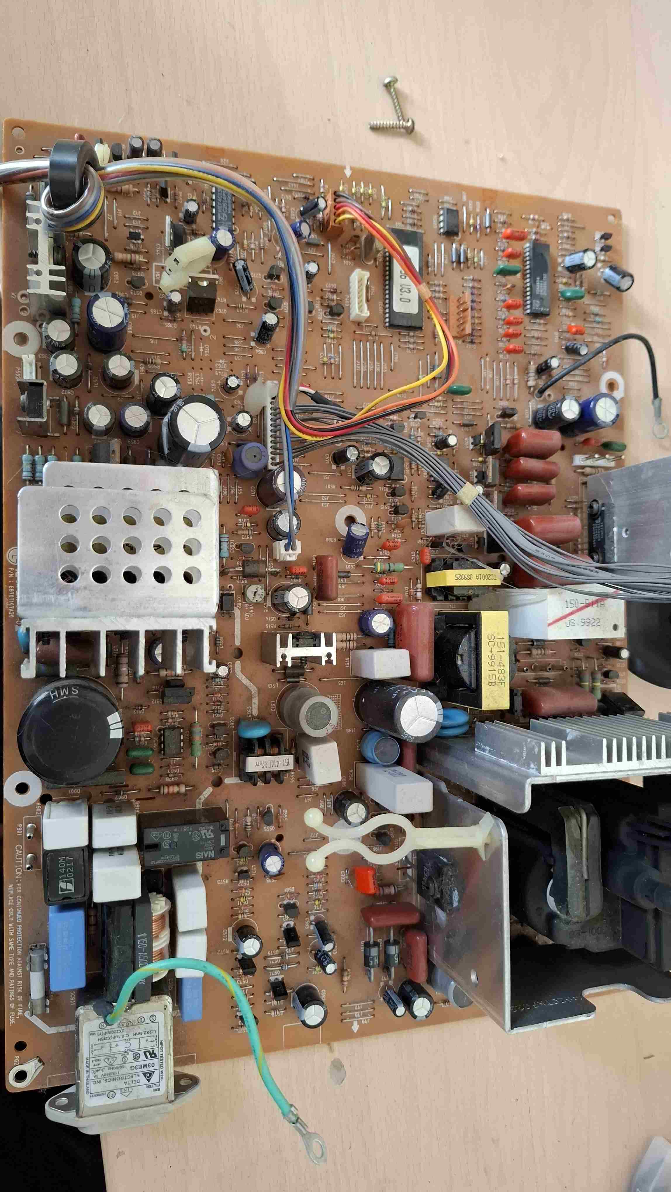 Buongiorno a tutti, premetto che sono nuovo su questo forum, quindi spero di aver inserito la discussione nella categoria giusta e di non infrangere nessuna regola. Da tantissimi anni ho un monitor CRT LG Studioworks 77M che ho sempre usato con i miei computer vintage e che vorrei proprio conservare, ma purtroppo da un po' di tempo presenta un problema dovuto probabilmente all'età. In una situazione di normale funzionamento, finché il pc è spento il led del monitor rimane acceso fisso di colore arancione indicando che lo schermo è in standby, e quando il pc viene acceso il led diventa verde fisso e appare l'immagine. Ora invece rimane normalmente in standby, ma quando accendo il pc il led del monitor inizia a lampeggiare di verde e non appare nessuna immagine. Penso che quando deve attivarsi vada in protezione. A riguardo ho fatto anche un video che potete trovare qui: https://youtu.be/ImcT8ytwoM4 Ho smontato il monitor e ho controllato la scheda per verificare se c'erano componenti visibilmente guasti (condensatori gonfi ecc.), ma non ho trovato nulla di strano, allego la foto della scheda smontata. Ricordo che negli ultimi tempi in cui funzionava, ogni tanto si sentivano delle scariche all'interno e quando c'erano queste scariche l'immagine si ingrandiva per un attimo. Che cosa può essere successo? In quale zona della scheda dovrei concentrare le ricerche del guasto? -