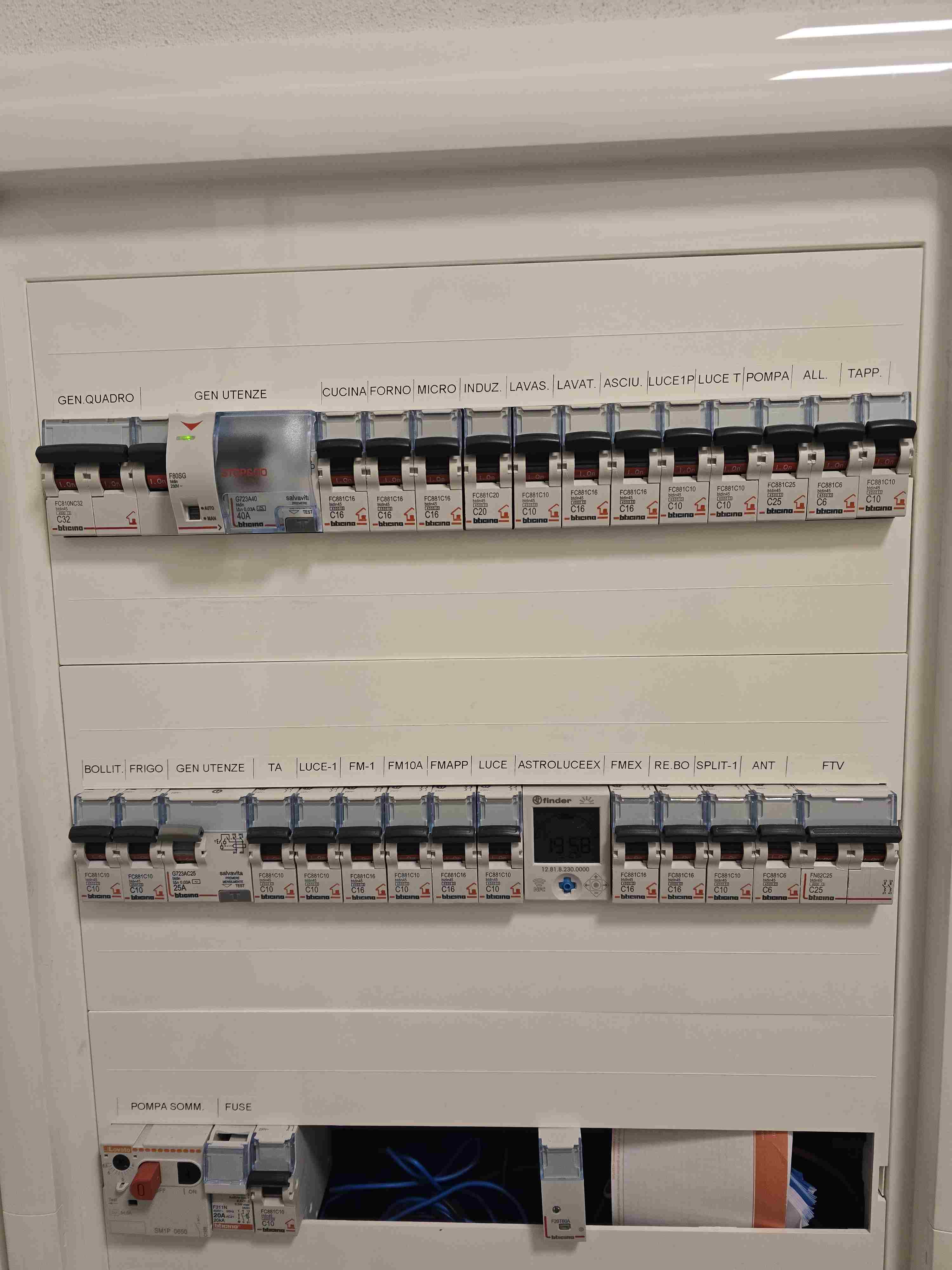 Ciao a tutti, scrivo per chiedere un parere su un problema che mi capita ormai da un po’ e che non riesco a spiegarmi. In allegato c’è la foto del mio quadro elettrico: casa nuova, poco più di cinque anni di vita. In modo del tutto casuale salta l'interruttore delle prese elettriche e, purtroppo, è successo di nuovo anche quest’anno mentre ero in ferie. Questo ha mandato completamente KO la domotica e le telecamere, che sono rimaste spente finché non sono rientrato. La cosa che mi lascia perplesso è che al momento dello scatto era praticamente quasi tutto spento. Tra i pochi dispositivi alimentati c'erano il router, un Raspberry Pi e uno switch PoE che alimenta le telecamere. Nessun elettrodomestico, nessun carico importante, niente di anomalo. Quello che scatta è l’interruttore delle prese elettriche, nello specifico quello con la dicitura “FM 10A”. Mi chiedo se sia normale che questa linea sia protetta da un magnetotermico C10, mentre le altre prese (quelle della taverna, “FM-1”, e quelle esterne, “FM EX”) sono entrambe sotto C16. Proprio la linea con i carichi più leggeri sembra essere la più delicata, e questo mi suona strano. Inoltre, questa volta non si è fermato solo l’FM 10A: è scattato anche il secondo generale utenze a valle, che però non ha lo start & stop. Questo non saprei come interpretarlo, ma potrebbe anche dipendere da un temporale? A questo punto vi chiedo anche un consiglio più pratico: è possibile applicare uno start & stop anche al generale utenze a valle (25A)? E, già che ci sono, esiste qualcosa di meglio rispetto al sistema BTicino? Mi riferisco a soluzioni magari più evolute o “smart”, controllabili anche da remoto, che evitino di ritrovarsi casa completamente spenta per giorni quando si è fuori. L’obiettivo è capire se la configurazione attuale ha senso, se il problema può essere legato ad un magnetotermico troppo sensibile, e soprattutto come rendere l’impianto più affidabile quando non sono a casa. Grazie in anticipo a chi vorrà darmi un parere o condividere esperienze simili. -