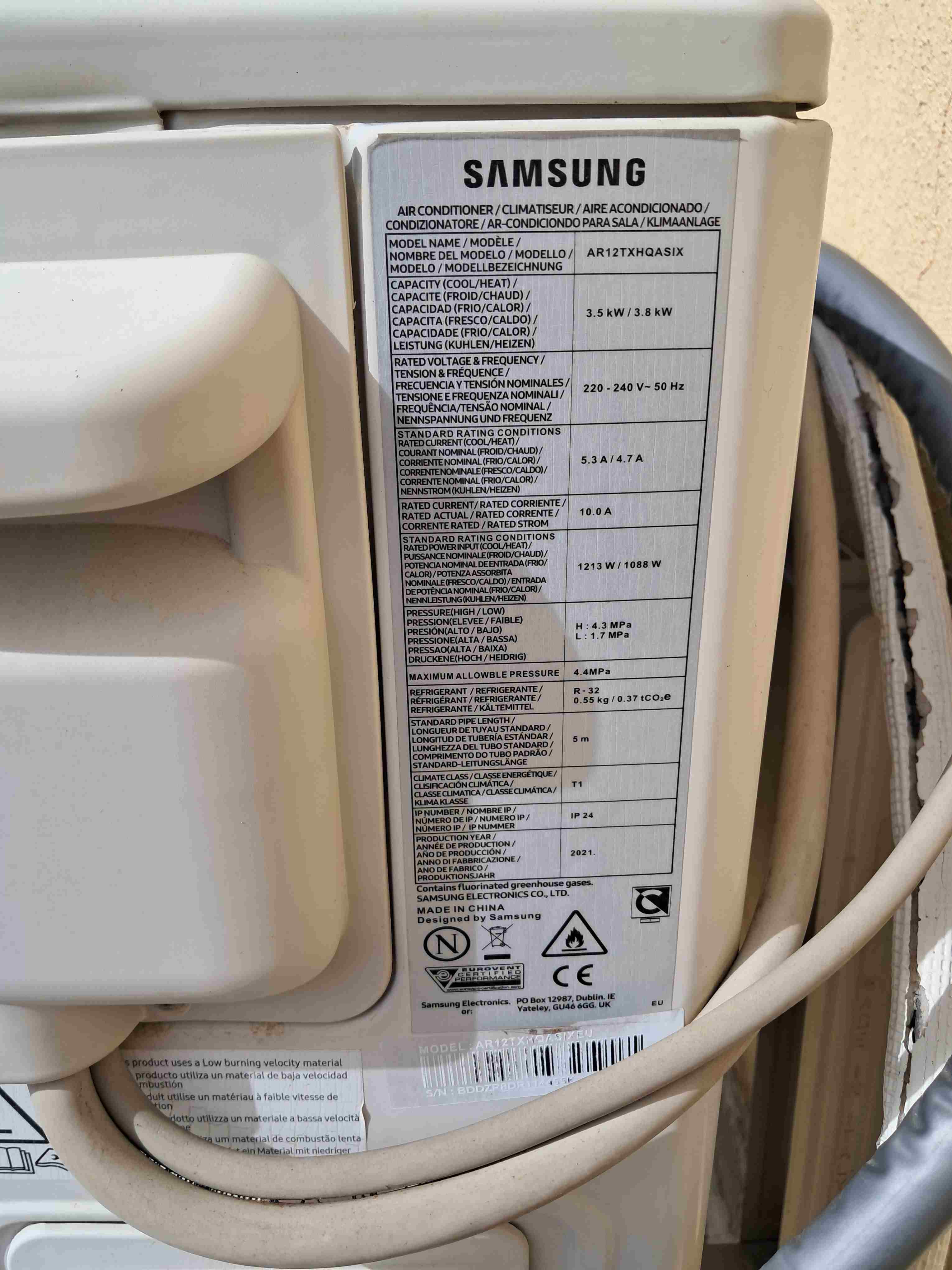 La potenza assorbita da un inverter è di fatto impossibile calcolarla durante il normale esercizio misurando la corrente, si può solo misurare, ma è sempre una misura fasulla. Di mezzo c'è la conversione in corrente continua e il/i condensatori a valle del ponte raddrizzatore, e il fatto che l'inverter varia in continuo la tensione che invia al motore, e quando c'è di mezzo un PWM la legge di Ohm non basta. Poi bisognerebbe sapere se il motore è asincorono, o sincrono cioè brushless. In caso di inverter vale sempre questa regola. In alimentazione all'inverter potresti misurare 10 A e l'inverter dirti che la corrente assorbita dal motore è 15 A, ovvero anche in contrario. Con gli inverter non bisogna usale degli strumenti esterni per avere dati attendibili, ma leggere i valori sul suo display. E nel tuo caso c'è anche il fatto che alimenti la macchina in monofase ma il motore è quasi sicuramente trifase. In ogni caso sull'alimentazione della macchina c'è il filtro che impedisce, o almeno abbatte di tanto, le armoniche inviate in rete. Se una macchina di climatizzazione domestica immette armoniche in rete te accorgi subito dalle lampadine led e dai tubi fluorescenti e dal TV o i monitor, sorvolando sul fatto che potrebbero intervenire gli interruttori differenziali. -