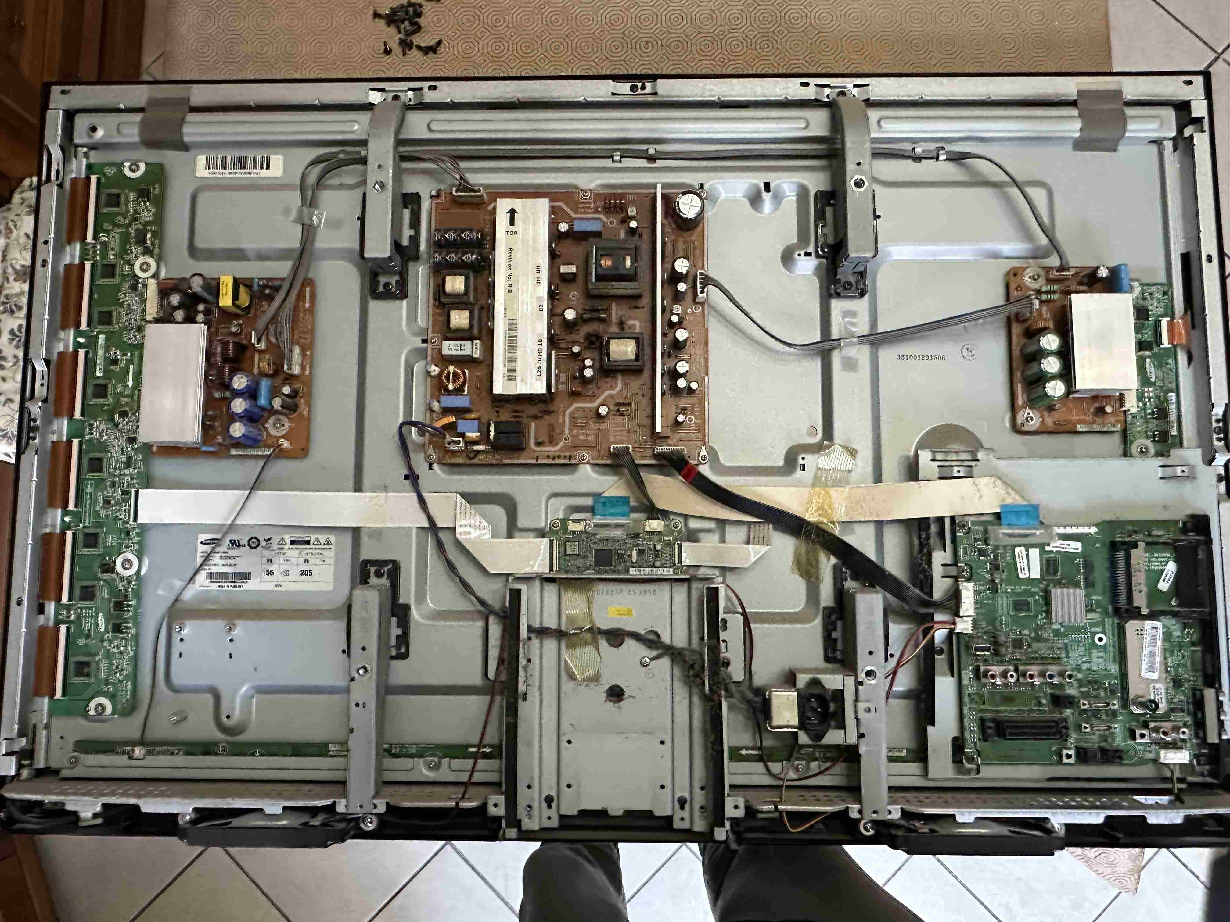 Ciao a tutti mi sono appena iscritto perchè ho bisogno di chiedervi gentilmente un consiglio su come muovermi. Come da titolo si tratta di una tv al plasma Samsung che ha 15 anni circa ed ha funzionato perfettamente fino a pochi gorni fa. Adesso, all'accensione, lo schermo rimane nero ma l'audio continua a funzionare. Ho verificato le due tensioni Va e Vs che corrispondono a quelle indicate sul foglietto interno...ho smontato e verificato i transistor che sono presenti sui due driver laterali collegati al pannello. Sulla scheda di alimentazione non ci sono fusibili saltati ed i diodi sono integri. So bene che consuma molto e che forse sarebbe meglio buttarlo direttamente come mi hanno caldamente già suggerito in molti ma vorrei comunque tentare una riparazione. Potreste darmi qualche dritta in merito? Grazie. :-)