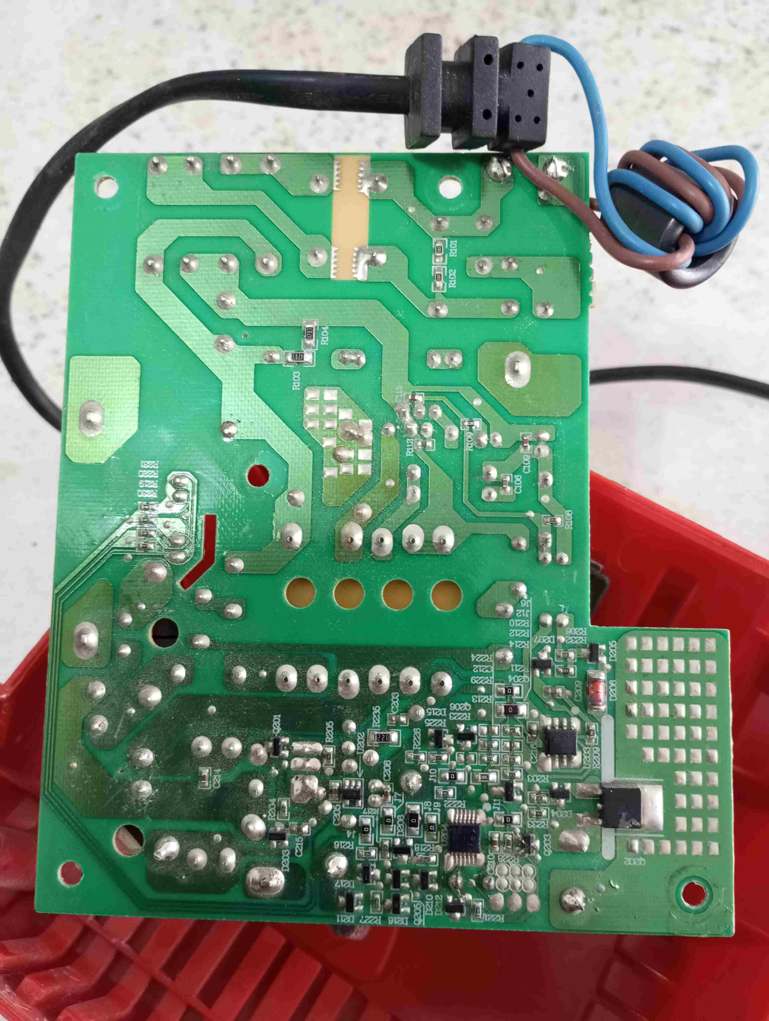 Buongiorno a tutti, sto tentando di riparare questo caricabatterie switch avrei bisogno di un aiuto. Praticamente non esce tensione all' uscita, ho controllato stadio iniziale e ho misurato sul condensatore una tensione di circa 300 volt, presumo che lo stadio principale di alta tensione sia buona. In uscita trovo soltanto 2,6 volt . Cosa potrei controllare? Grazie