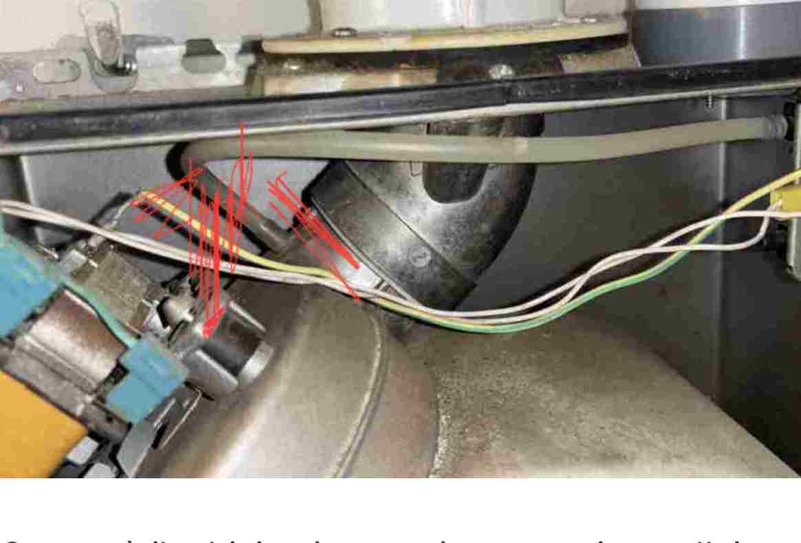 taglia accorciando il tubo o abbassa la curva del tubo di silicone fino a far in modo che il tubo deve solo scendere dal pressostato al raccordo sul ventilatore , non deve fare quella salita che ho indicato con la freccia rossa . Altrimenti la condensa ristagna tra la parte in rosso e il pressostato . -