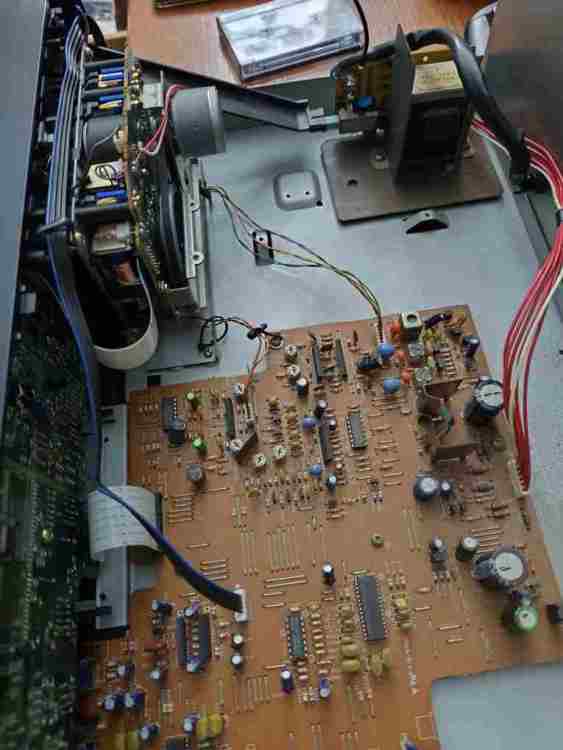 Buongiorno, sono venuto in possesso di questa piastra a cassette a cui andavano sostituiti cinghie e idler. Dopo aver provveduto mi sono accorto che non é presente il segnale in ngresso sul canale destro. Tutto il resto mi sembra perfettamente funzionante. Ho provato, schema alla mano, a seguire lo schema (per quanto mi possano consentire le mie limitatissime conoscenze di elettronica ed ho provato ad immettere un segnale di 12500 hz su entrambi gli RCA in ingresso. Con multimetro digitale settato in DC ho verificato la presenza della tensione di 6.5v su ingressi (pin 1-30) ed in uscita (pin 15-16) del dolby IC, sui pin in ingresso (2-3) ed in uscita (1-7) dell' IC201, sui pin 9-10 dell' IC202 e sui pin 1-4 sul connettore della testina di registrazione lato scheda madre. È evidente la mia incompetenza in elettronica dato che contrariamente a quanto pensassi non ho misurato il segnale in ingresso, dato che spegnendolo (o variandolo dalla manopola del livello di registrazione) i valori non cambiano. Avendo come unico strumento un multimetro digitale, c'è qualcuno di buona volontà che mi può aiutare ad interpretare lo schema correttamente e risalire al problema? Ovviamente qualcuno armato di buona volontà e tanta pazienza... Di seguito il link con il manuale di servizio di questa piastra https://drive.google.com/file/d/1h1fM2SEYu6twYkFTU6QZF9RWOXBHE14E/view?usp=drivesdk -