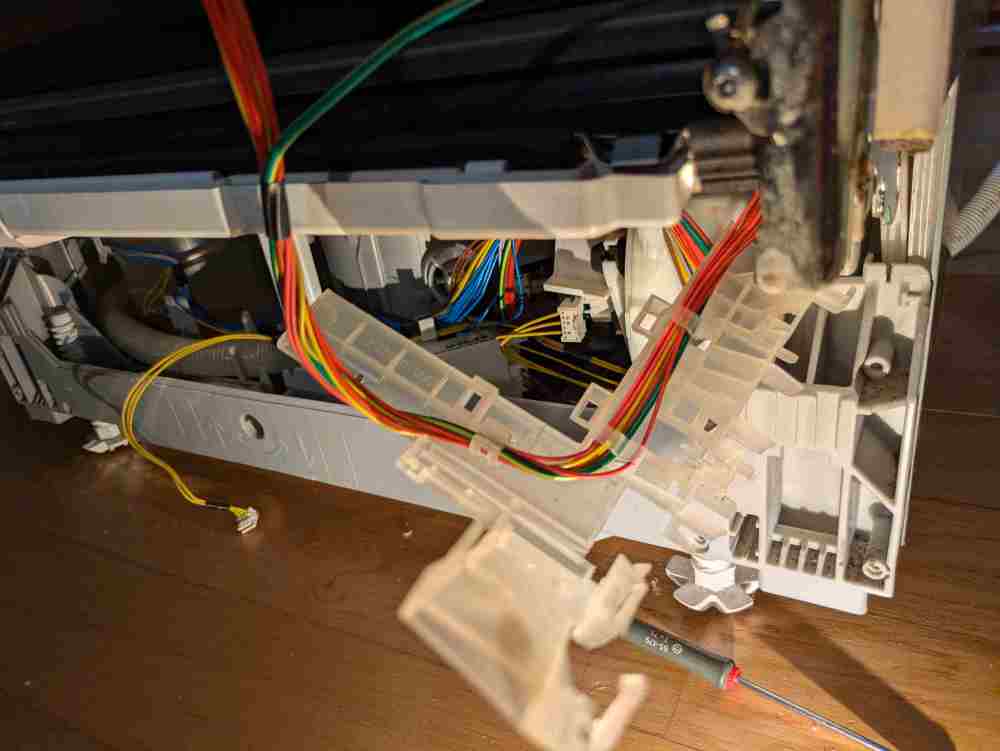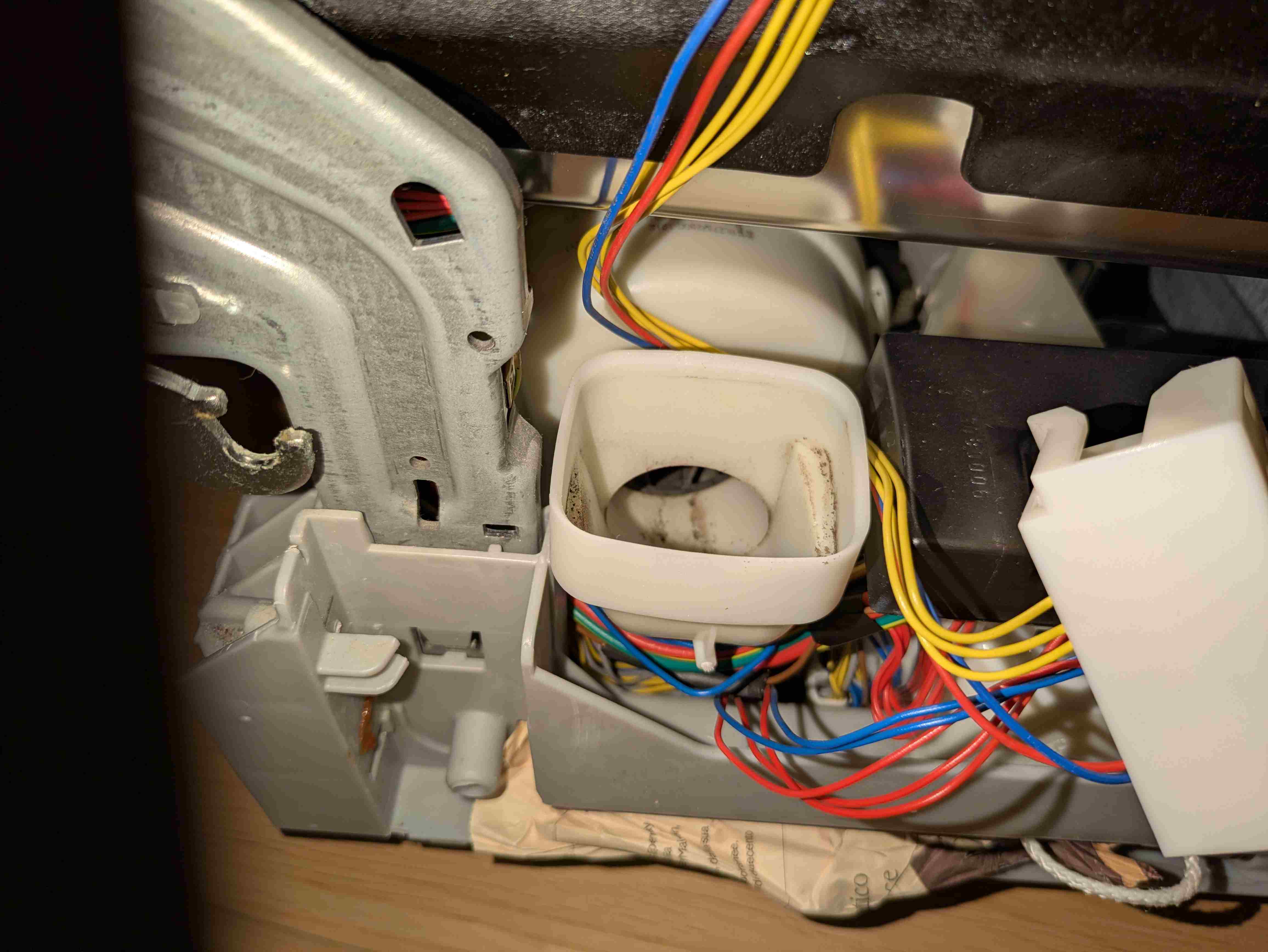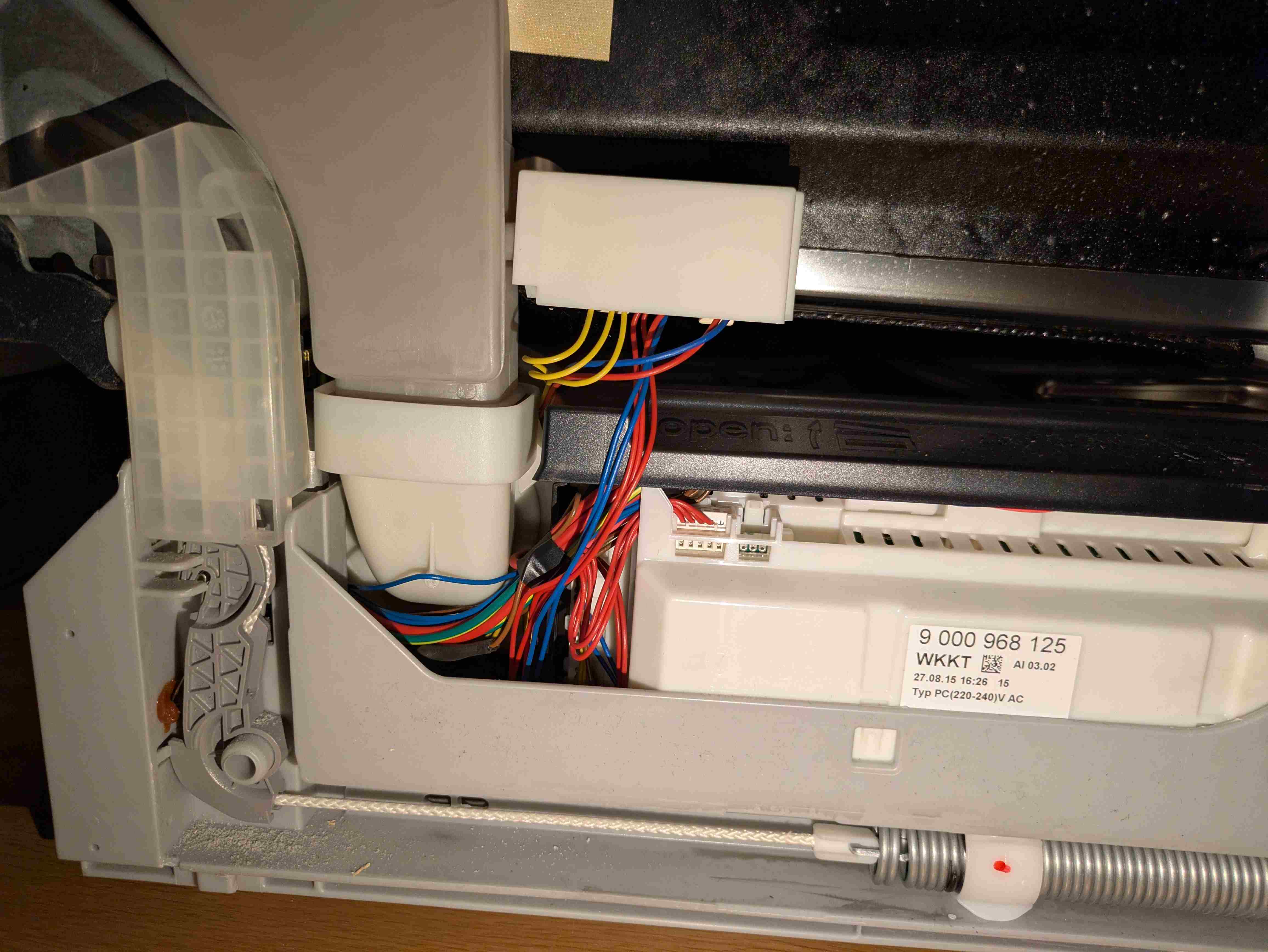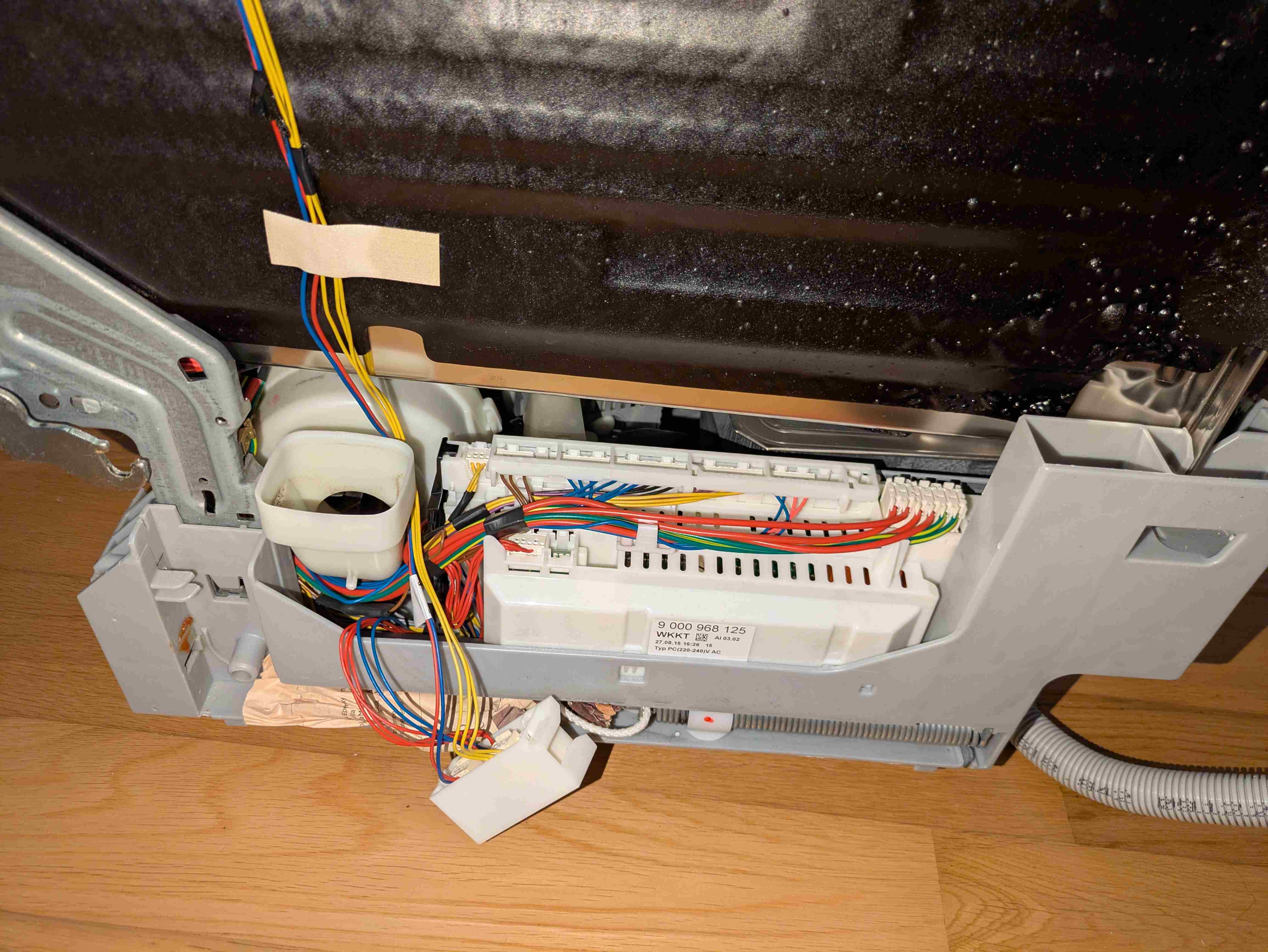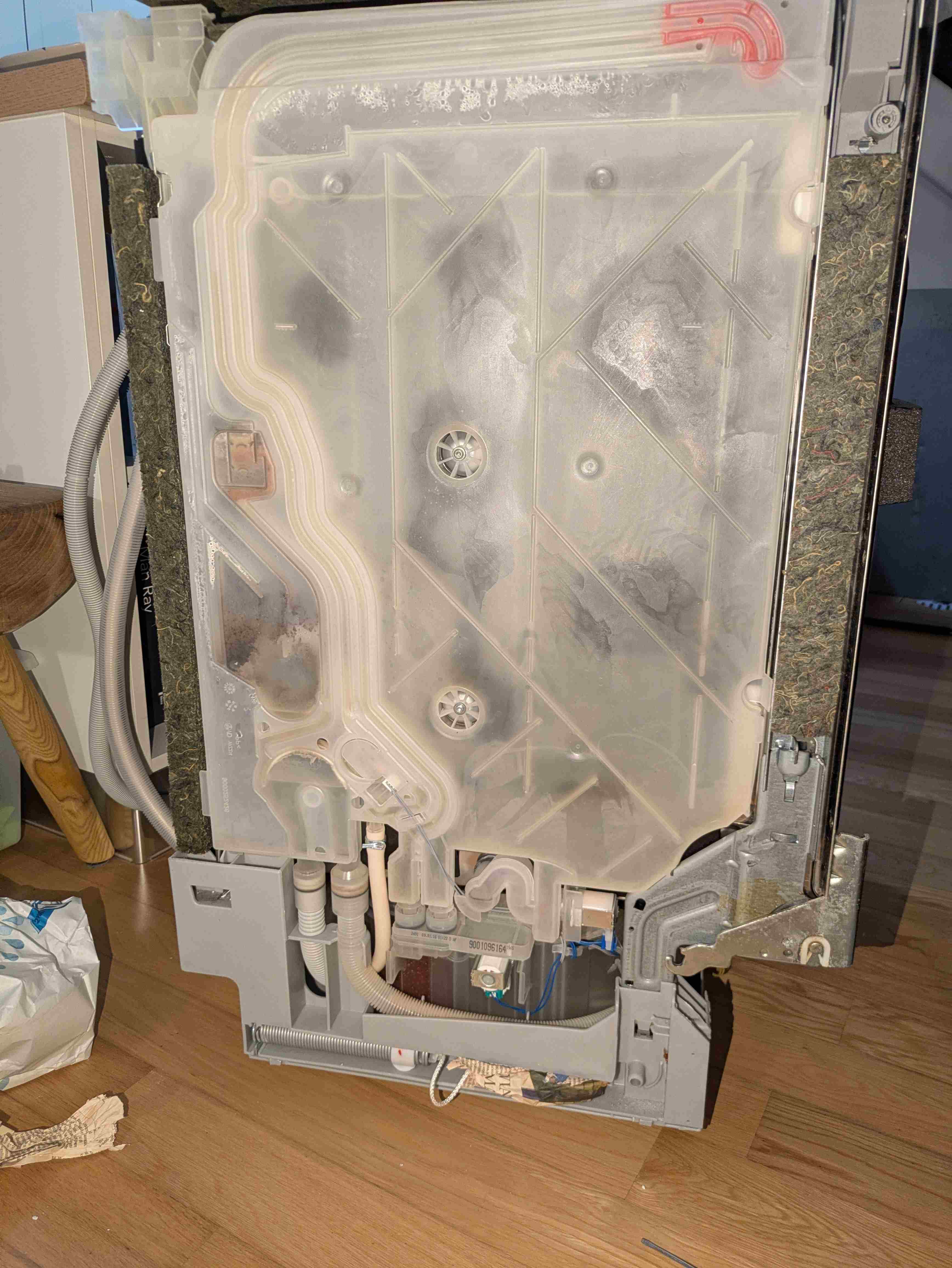 Aggiornamento Ho smontato la porta e controllato cablaggio, connettori e display. Tutto ok. No tracce di ossido, innesti a scatto inseriti, cavi non soggetti a piegature critiche. Pulita per bene all'interno, estratta dall'incasso, smontata parzialmente. Controllato cablaggio che passa per la porta ed è perfetto. Ventilatore zeolite sembra ok ed asciutto (non l'ho smontato ma solo guardato da sopra). Allego un po' di foto. Non so cosa controllare... Chiedo aiuto!! Volevo togliere la scheda di potenza/alimentazione ma per farlo dal video link https://www.youtube.com/watch?v=qYTdMR9xPZI&t=7 si deve alzare metà lavastoviglie staccandola dalla basa. Solo metà però. Ma non essendo la mia lavastoviglie della stessa marca e modello di quella del video mi chiedo se sia corretto anche nel mio caso seguire quella procedura (sulla fiancata di sinistra della lavastoviglie, in basso ci sono molti connettori idraulici con o-ring.. non vorrei rischiare di rompere tutto alzandola solo dall'altro lato. O mi dite che si può fare? Vedi foto). Se può essere un indizio, i programmi di lavaggio quando da l'errore si interrompono sempre verso la fine. Quando facevo il ciclo "econo", si interrompeva sempre durante l'asciugatura finale. Poi sono passato al lavaggio "econo + vario speed" e anche li quando si interrompe lo fa agli ultimi 10 minuti (non mi ricordo se fa l'asciugatura anche quel ciclo oppure no). Solo l'ultima volta si è interrotta a metà ciclo, ed aveva dentro ancora l'acqua. Disalimentata per 3 ore, alimentata, due risciacqui con detersivo e l'ho smontata.