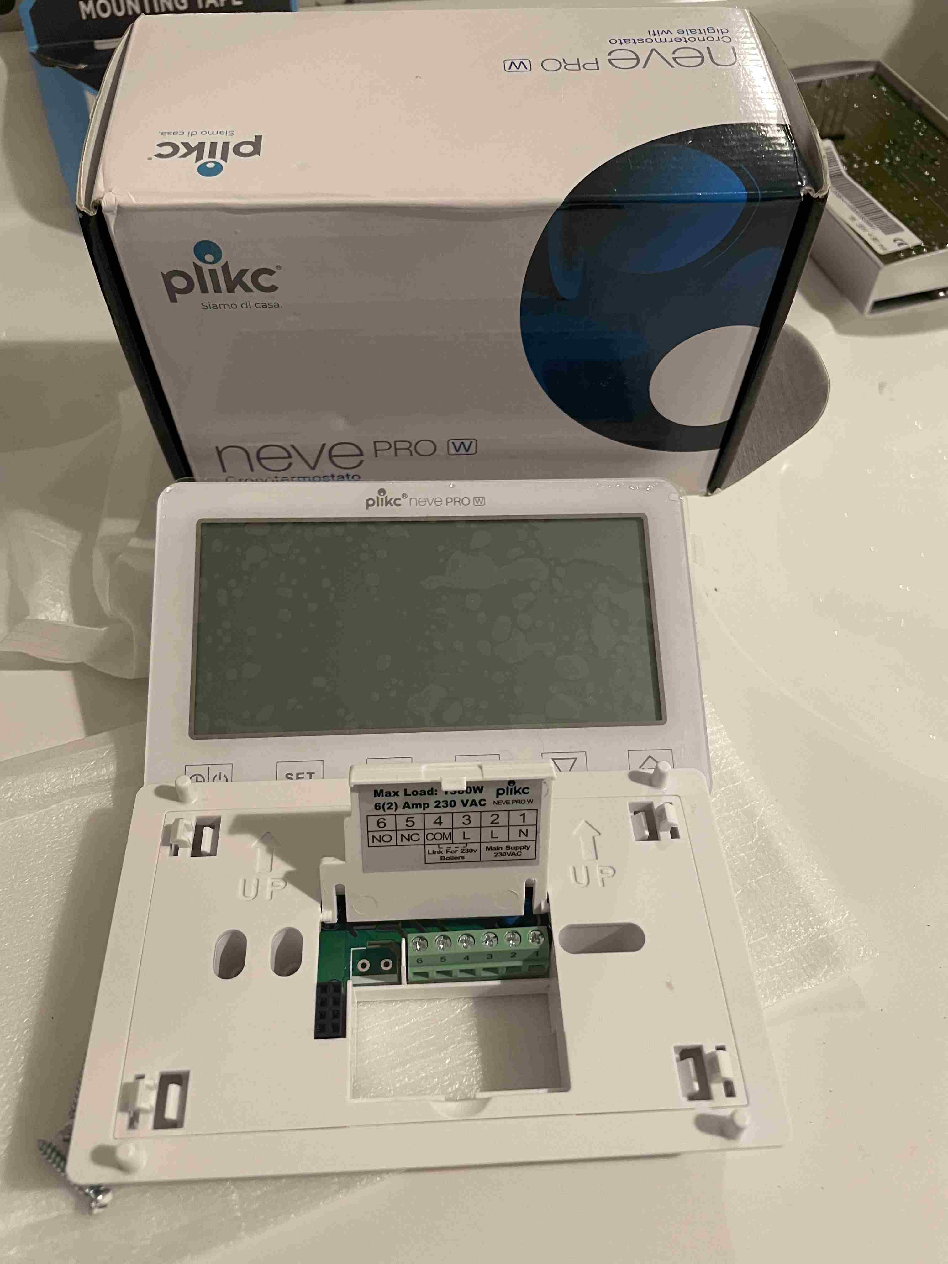 Ciao a tutti , nel mio nuovo appartamento dovrò sostituire il termostato attualmente in uso modello Vaillant vrc 410 con il nuovo pclick neve pro w. Allego foto di entrambi per capire come posso effettuare i collegamenti in quanto l’alimentazione 220 richiesta dal nuovo non sembra esserci . Grazie a chi saprà darmi una mano .