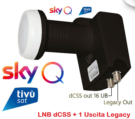 Faccio solo esempi indicativi, poi sarai tu a scegliere: LNB dCSS: (informati anche da un CAT SKY, se fai abbonamento se non erro te lo forniscono loro.) Ce ne sono di varie marche, questo quì per esempio ti dà anche un'uscita tradizionale (Legacy), che potresti usare nel caso avessi un vecchio decoder non Unicable (senza SCR/dCSS per capirci). Partitore a 6 uscite: Preferibilmente con connettori F da avvitare, ma esistono anche quelli a morsetto. Chiusura 75ohm per le uscite non utilizzate: Questa in foto è del tipo non isolato, volendo esistono quelle isolate ma a te vanno bene anche queste, perchè il partitore ha i diodi interni che bloccano la tensione dei decoder verso le altre uscite. Adattatore F-F femmina: Io di solito uso questi per farmi le prese dirette, facendo un foro sul tappo a frutto a seconda della serie civile da installare, ma esistono anche già fatte. E infine, i famosi connettori F (Attenzione! Ci sono quelli per cavi coassiali diametro guaina 5mm e quelli per cavi da 7mm) Come cavo coassiale prendi quello da 7mm di diametro, per esempio l'ottimo DG113 della Cavel o equivalenti, no cinesi! -