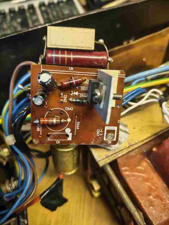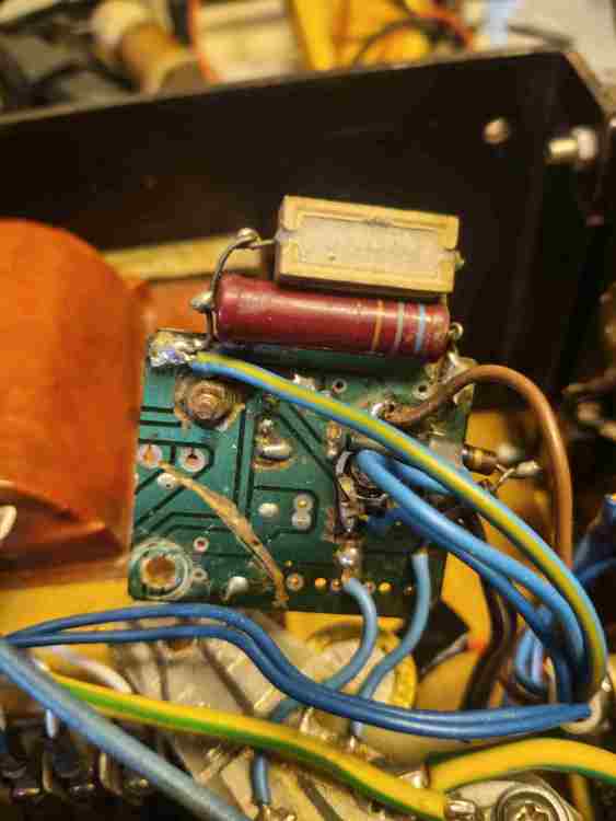 Per Ctec: ti allego le foto della scheda che pilota i finali, come vedi piuttosto minima ed in quanto alla funzionalità manca un regolatore di corrente che permetta tramite un potenziometro di impostare il valore di corrente da zero a quanto richiesto di volta in volta dal carico. Funzionalmente è a posto infatti la tensione in uscita è presente e variabile mentre i finali testati uno ad uno sono tuti guasti, immagino un cortocircuito del resto non c'e nemmeno un fusibile sul secondario che dovrò aggiungere. Per Marco direi che concordo sulle sue osservazioni potrebbe essere così, del resto sul trasformatore non è applicata alcuna targhetta solo un codice e un numero di serie stampiglisati sul metallo. I finali pur andati erano quattro MJ15003 che a differenza dei 2n3055 hanno una tensione di 140v e corrente 25 ampere. L' ampermetro sul frontale ha un fondoscala di50 ampere. Queste cose alla fine mi lasciano pensare che le prestazioni fossero anche buone, certo sempre ricordando le perdite in calore, In sostanza io cerco una scheda di comando che abbia la possibilità di variare sia tensione che corrente poi, i limiti li potrei valutare in fase di collaudo. Inoltre sarà il caso di acquistare quattro nuovi transistor dello stesso tipo (MJ15003) o altro? Grazie -