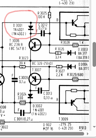 Buongiorno. Questo non vorrei che... mi ha fatto tanto pensare e ripensare. Poi finalmente ho capito anche perchè dai calcoli fatti il carico fantasma sul nodo era guarda caso giusto di un altro Mega. L'immagine penso rimane eloquente per descrivere quello che poi ho fatto e da buon Napoletano ho ripercorso tutti gli stereotipi appiccicati addosso fino a rispolverare il famoso detto: '.. 'O fierr ca fa 'o mast' . In sintesi ho corso dietro a un falso problema tutto questo tempo fino al punto di disturbare il forum perchè era lo strumento stesso ad aggiungere il Suo magro mega di impedenza al partitore in fase di misura. Vabbè , 'video meliora proboque, deteriora sequor' ma ho già cestinato lo strumento da elettricista e se riesco mi compro un vecchio ICE. Andando avanti con l'analisi ho scoperto che su un canale il valore del BIAS danzava ballerino dai zero Volt fino a raggiungere anche 60-70 mV mentre l'altro rimaneva fisso sui 35 mV. In prima battuta ho sostituito i vecchi trimmer malconci e ossidati ma chi causava il problema era un diodo collegato come segnato sullo schema. Volevo ringraziare tutti per la collaborazione. Io vado avanti con il lavoro di recap e cercherò di tenere aggiornato il gentile forum sperando che il tutto possa un pochino interessare. Buona giornata. -