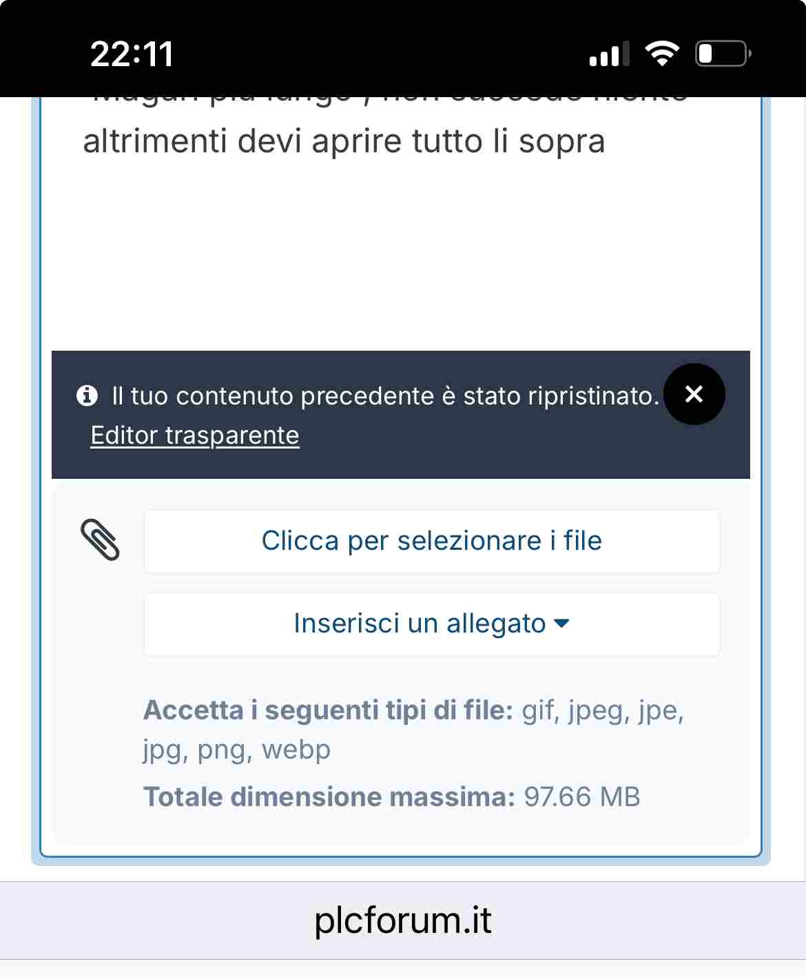 Sta scritto clicca per inserire file sotto la pagina di risposta