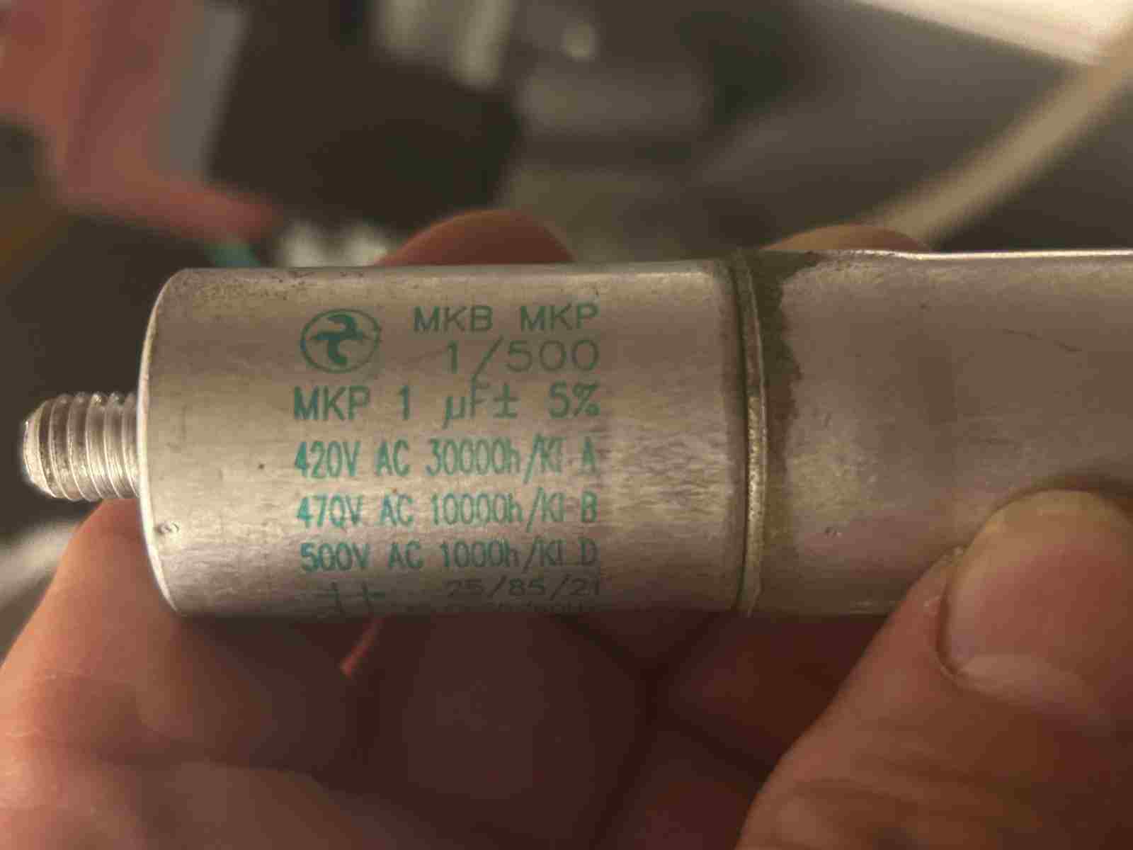 Scusa, allego 3 foto ma non ho trovato nessuna targhetta sul motore, quello che ho pulito penso che sia encoder che verifica il motore se gira ? Aggiungo che il giorno prima quando andava in allarme è bastato togliere la corrente e poi partiva ma in 2 gg la situazione è andata sempre peggiorando fino ad ora che non riesce più a partire per via allarme motore fumi Ti do altre indicazioni, durante i vari tentativi ho visto che all'accensione della stufa il motore non parte ma lo fa appena va in allarme Scusa se non ho risposto alla domanda, si i due cavi che escono da motore vanno quello di alimentazione va a una scheda passando da un condensatore, l'altro è dell'encoder e va anche lui alla scheda . Oggi ho riaperto la stufa per vedere di capirci qualcosa in più, poi l'ho accesa e con un aiuto manuale al motore è partita dopo 2h lìho spenta ma alla riaccensione da ancora il solito allarme motore fumi Aggiungo foto del condensatore e dei dati del motore Grazie 1000 per l'interessamento - Oggi
