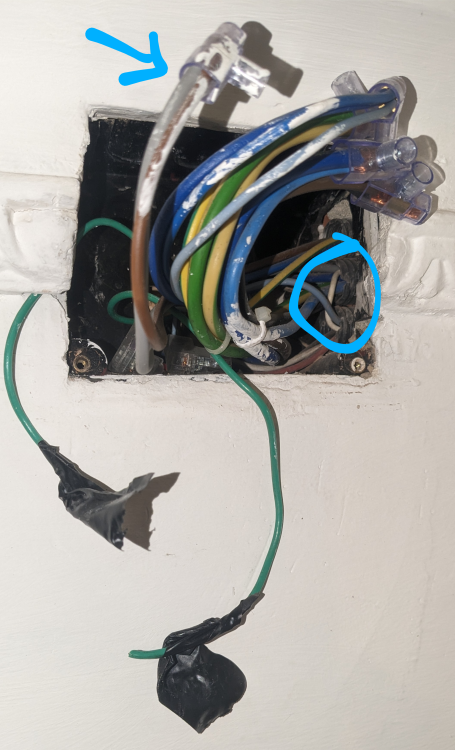 Nella scatola più vicina al citofono ci sono i 2 verdi tagliati e un cavo bianco che va da una manica all'altra e quelli grigio marrone. Che mi consigliate di fare? Grazie -