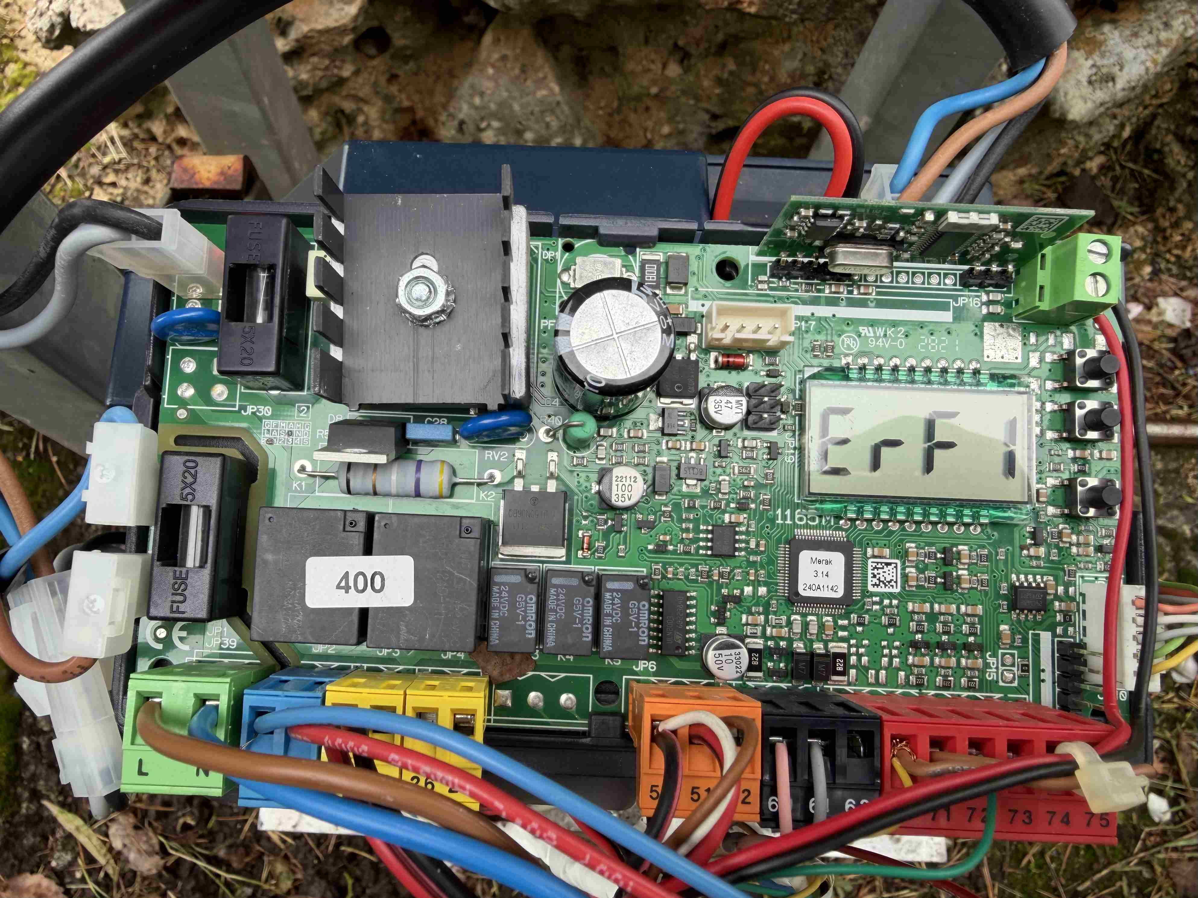 Buona sera a tutti, Sono nuovo sul forum e pur cercando non ho trovato un problema simile al mio nelle discussioni già aperte. In pratica è da un po' di tempo che il mio cancello in maniera random quando lo apro si blocca senza arrivare a fine corsa poi riparte da solo per fermarsi prima di chiudersi e così via. A volte funziona regolarmente a volte mi fa questo scherzo. L'unico modo che sembra funzionare quando si comporta così sembra essere staccare il morsetto verde (L N) e lasciarlo con la sola batteria tampone. Così funziona perfettamente. Se ricollego il morsetto verde ricomincia. Ho sostituito anche la scheda pensando fosse un problema della stessa ma non è q7ello il problema a quanto pare. Cosa potrebbe essere? La scheda e questa in foto. L' errore che riporta è perché stavo facendo Delle prove ma sinceramente non ricordo quali. Grazie a chi mi risponderà -
