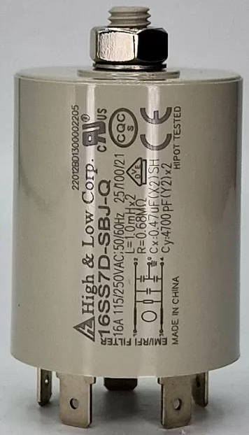 C'era una discussione di 10 anni fa con lo stesso tuo quesito, non risolta però, quindi per il momento non la linko. Ho visto anche su un altro forum un quesito identico, anche lì non risolto... E allora mi prendo questo rischio, ovviamente non prometto miracoli, ma un tentativo a bassissimo costo lo farei. Questo è un filtro che puoi trovare per esempio dentro una lavatrice o una lavastoviglie, non è ingombrante e in rete si trova anche a meno di 10€. E' da 250VAC - 16A (da 275VAC sarebbe meglio) Nello schema stampigliato, le connessioni con i condensatori vanno verso le utenze PC ecc. mentre le connessioni dove non ci sono i condensatori vanno collegate all'ingresso di alimentazione del Powerline (la spina, insomma). La terra, ovviamente, va alla terra. Ho scelto questo tipo di filtro perché, a differenza di quelli inscatolati metallici rettangolari, ha due connessioni senza condensatore ma solo i capi dell'induttanza di filtro common-mode, e lì i segnali del Powerline non dovrebbero venire assorbiti ma rimanere abbastanza forti e viaggiare lungo le tue linee elettriche fino ad arrivare (si spera) all'altro Powerline che hai nel box. Se vuoi cimentarti in questo tentativo o hai dubbi, fammi sapere. -
