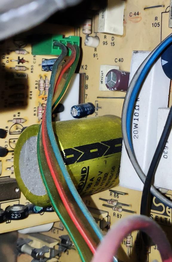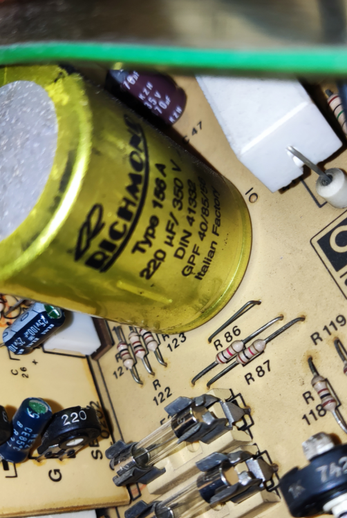 Buongiorno a tutti, ho un monitor arcade anni '90 della selti di cui non si trovano gli schemi. È vecchiotto ma tutto sommato funziona. Appena acceso da freddo è completamente sfuocato poi si sistema dopo 1 o 2 minuti, leggendo su qualche manuale di riparazione monitor ho visto che il responsabile è sicuramente il condensatore di filtro. Provando a scaldarlo con il phon infatti non si presenta il problema della sfocatura. Ora il mio problema è questo: quello montato è un Richmond ormai introvabile quindi vi chiedo se secondo voi posso sostituirlo con un jccon di uguale capacità e con tensione di lavoro un po' più alta. Vi allego le foto. Grazie