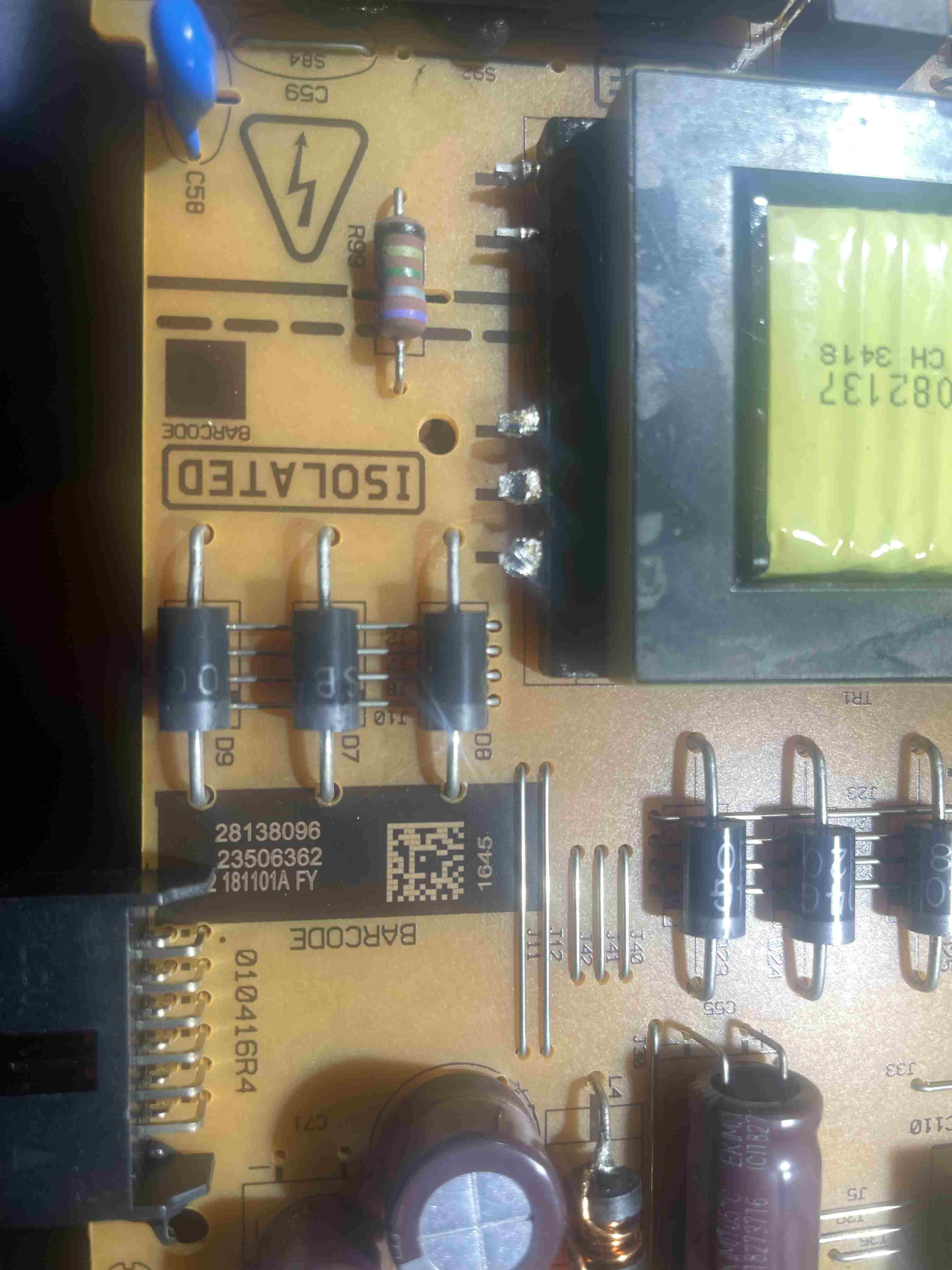 Risolto sostituendo i 3 condensatori uguali cilindrici in foto. ho risolto per la scheda ma lo stesso non raffredda bene volevo chiedervi qualcuno mi può dire quanto deve essere la pressione sullo spinotto di ricarica sul motore quando è a riposo? il gas è R134a quando si avvia il motore invece, credo sia normale fa in aspirazione. -