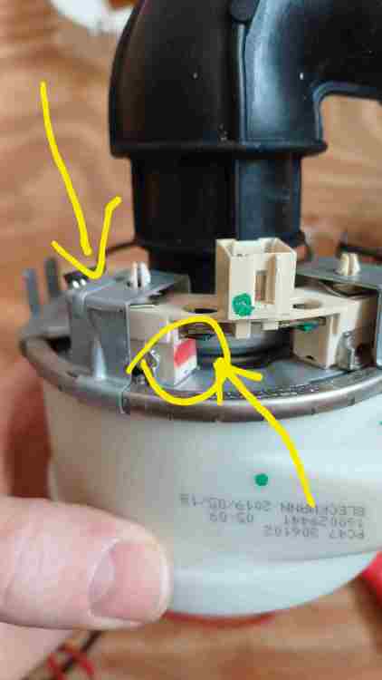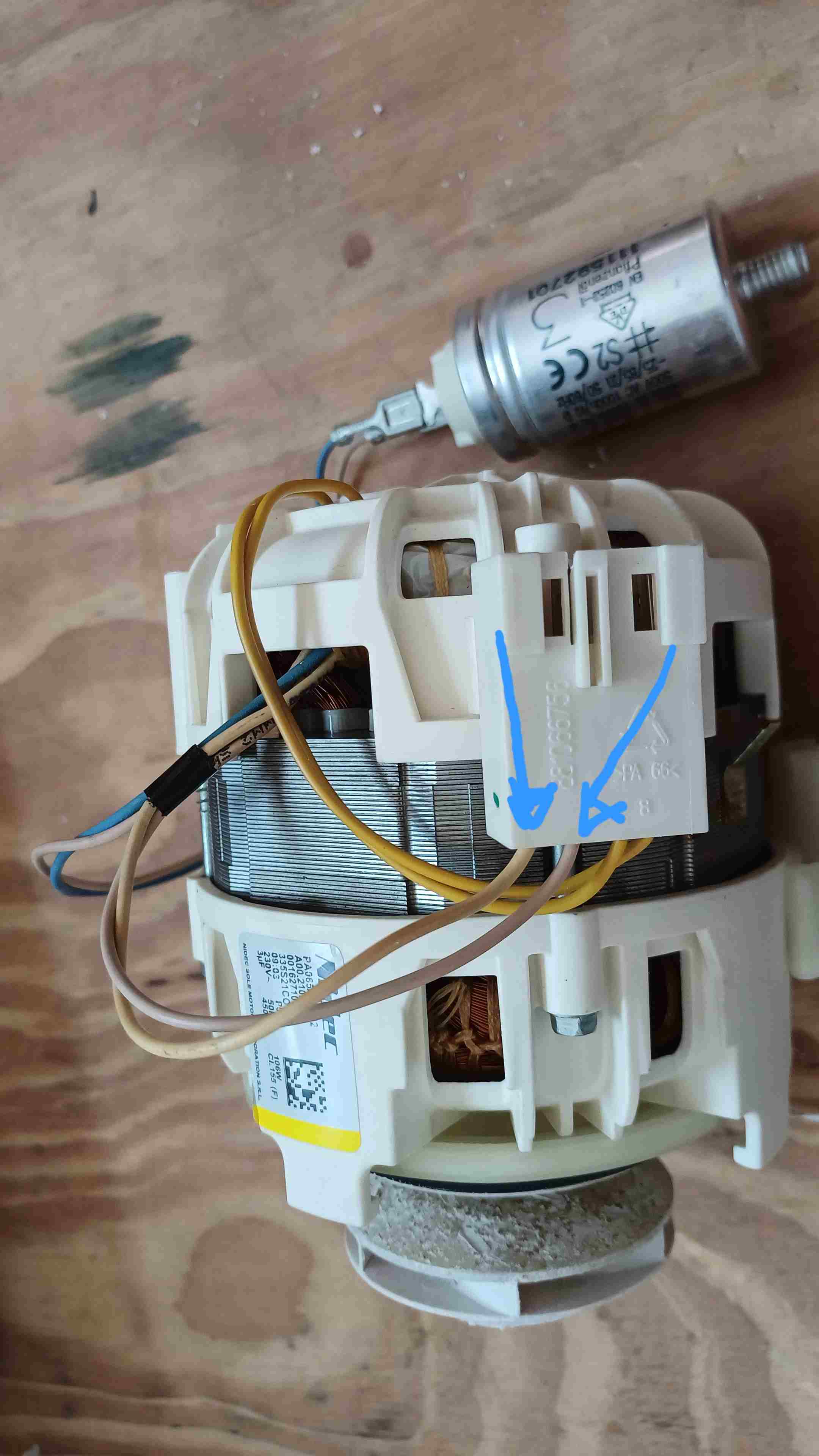 Ciao Stefano, grazie della pronta risposta. Il motore gira regolarmente, prima di smontare la resistenza ho fatto fare un ciclo lungo da 75' alla lavastoviglie e lo ha portato a termine senza problemi, a parte il fatto di non aver scaldato l'acqua. Ora il motore è a banco, per cui dovrei provarlo presumo, dando alimentazione ai capi contrassegnati con le frecce blu, correggimi se sbaglio: La girante è libera e gira perfettamente in asse. Poi ripeto che ha comunque fatto un lavaggio tranquillamente. L'acqua all'interno della camera di lavaggio suonava una meraviglia. Provo comunque a farlo andare come ho ipotizzato? Grazie ancora -