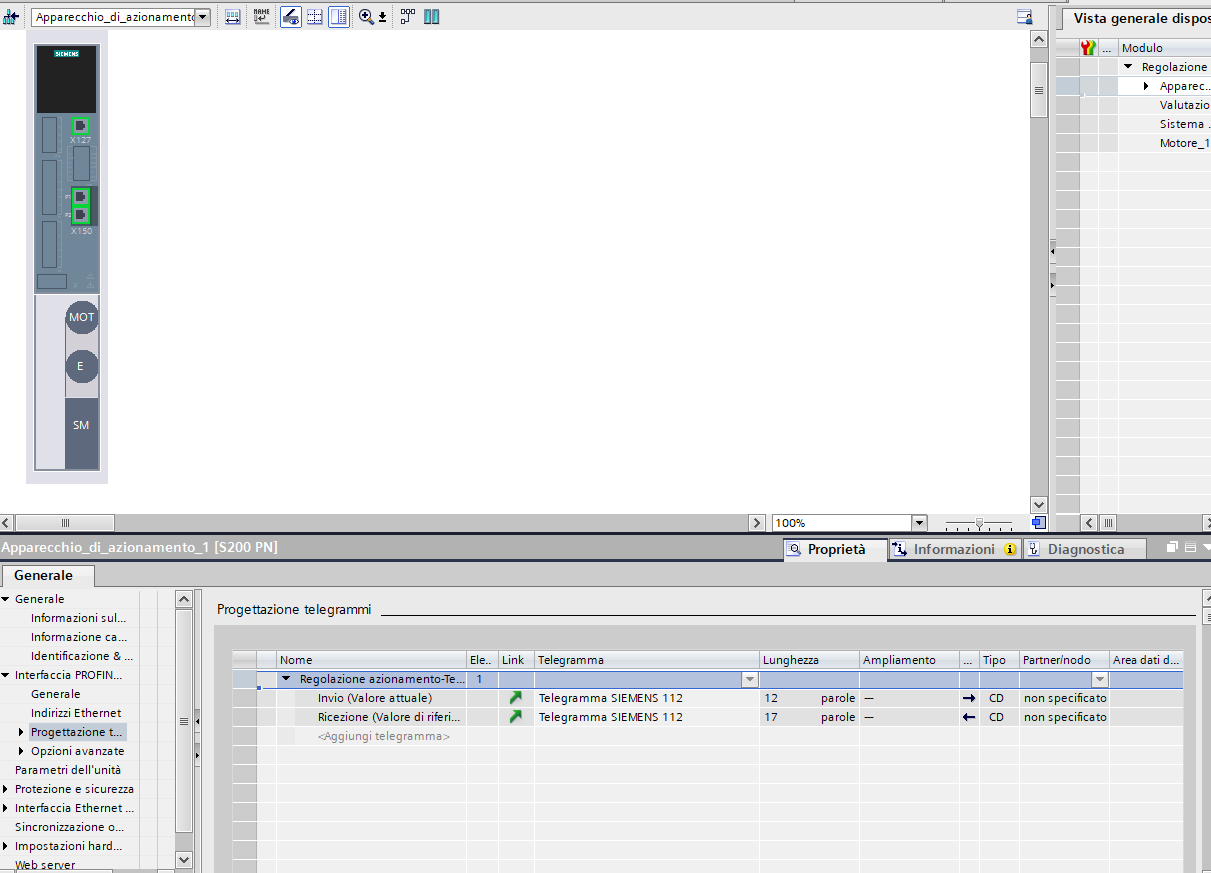 Buongiorno, ho configurato un S200 su Tia portal 19 con telegramma 112 (mi serve controllarlo in posizione). Ho aggiunto l'oggetto tecnologico PositioningAxis ma sui telegrammi (sia azionamento che encoder) non è presente il 112. Non mi da errore ma solo warning, è normale o mi sto perdendo qualcosa? Grazie.