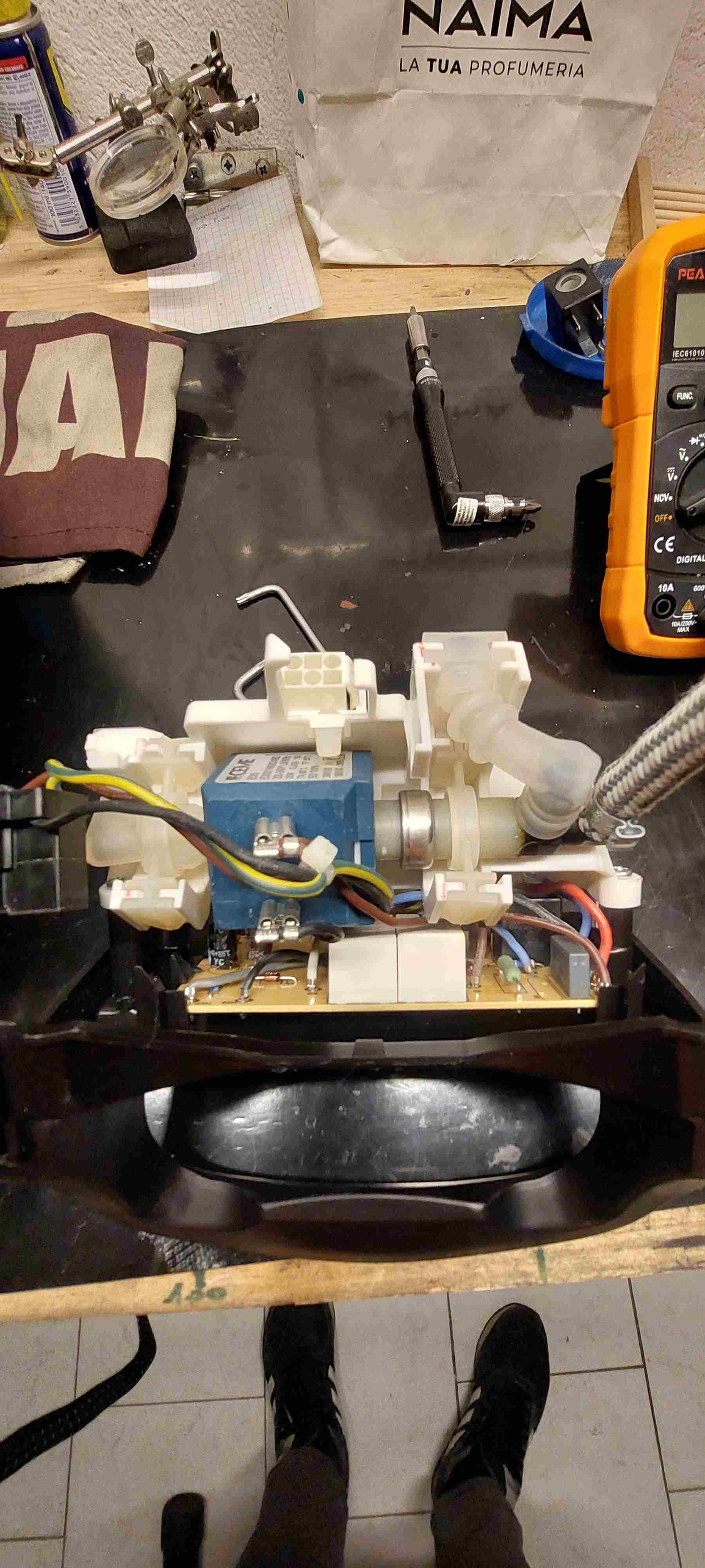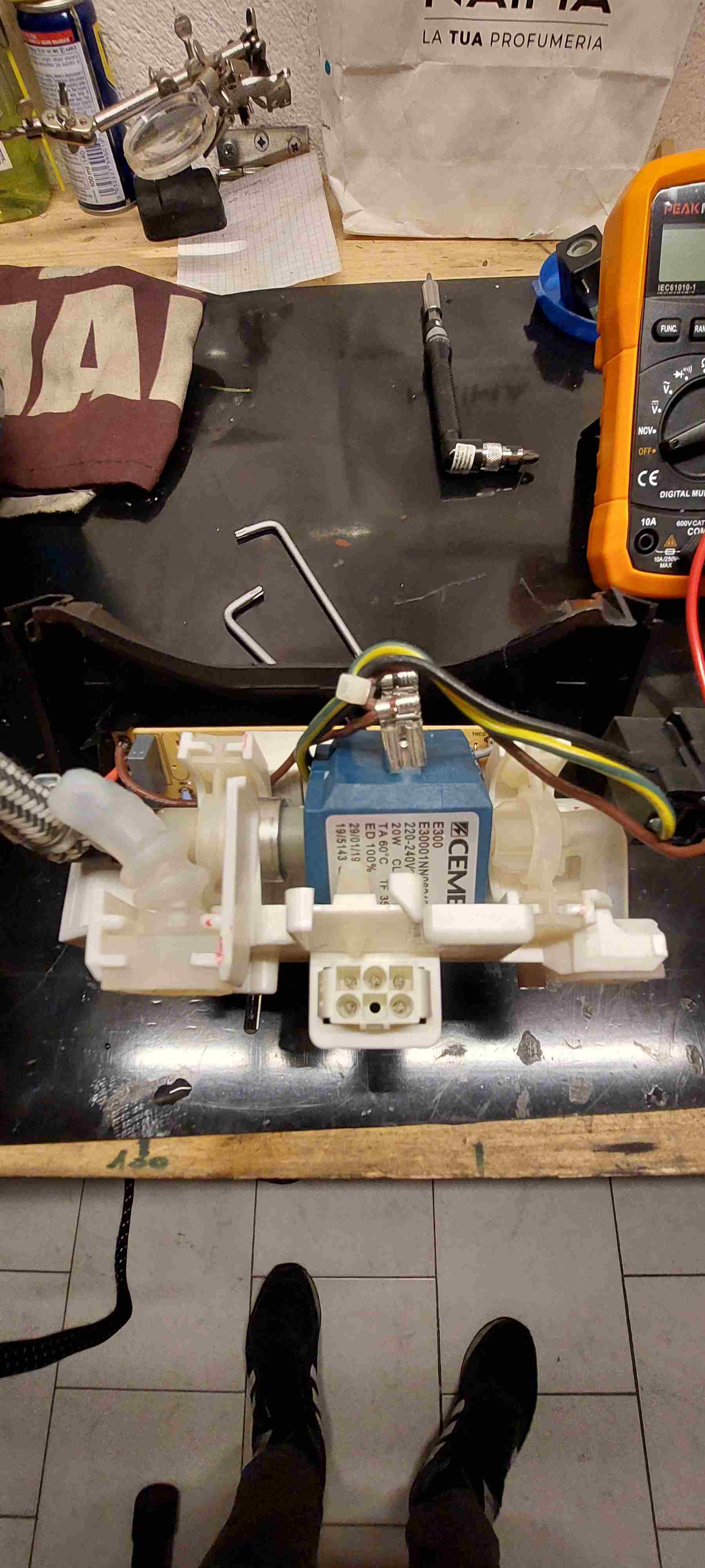 Rowenta compact steam pro problema con vaporeStefano Dalmo ha risposto a Henz alla discussione in Piccoli elettrodomestici Le foto vanno bene . Una volta acceso , la caldaia deve arrivare ad un punto che il termostato che vedi sulla caldaia deve interrompere il riscaldamento , poi parte la pompa e fa un rabbocco di acqua . e appena la spia smette di lampeggiare si può azionare il pulsante per far uscire il vapore . ora tu dici che il vapore non esce , ma la spia smette di lampeggiare ? La tensione sulla elettrovalvola ci arriva quando si pigia il pulsante ? il cavo che arriva dal ferro per portare tensione alla elettrovalvola è il nero prova se ritorna tensione dal nero quando pigi il pulsante . metti un puntale sul neutro e uno sul nero se non segna 220 passi il puntale sulla fase e l’altro sempre sul nero , fai sapere qualcosa