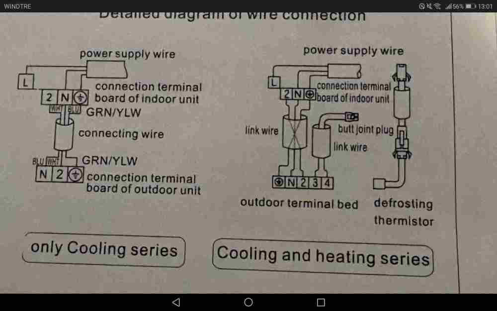 il primo con spinotto bianco sembra che da una parte abbia una sonda forse da mettere sul retro unita esterna da schema sembra cavo con spinotto bianco vada posizionato sul retro unita esterna, cavo co spinotti neri un capo va nello spinotto nero unita interna l'atro va al morsetto 4 e 5 unita esterna - Oggi