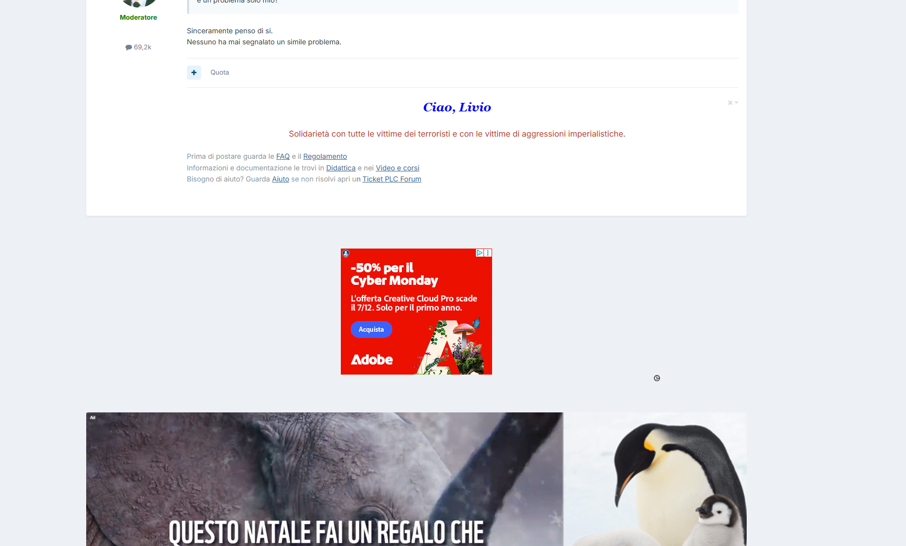 Intanto segnalo che sono riapparse tutte le discussioni che mancavano fino ad alcuni giorni fa.🙂 Per le pubblicità (che io odio, capisco che servano per tenere in piedi i vari siti e bla bla bla), quando sono troppo invasive attivo l'AdBlock e spariscono dalla scena.😉 -