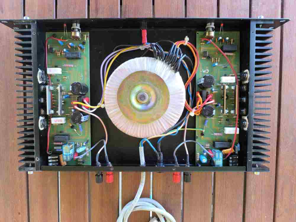 Buonasera, mi scuso subito se ho sbagliato sezione. Dunque: ho scambiato un finale Pioneer M90 (da sistemare) con diverso materiale Revox, Nakamichi, ESB, B&O ecc... Tra gli altri un piccolo finale per uso semi professionale, lo deduco dal fatto che ha gli ingressi bilanciati. Il finale ha la sigla AM100 e una costruzione abbastanza ordinata e robusta. Vorrei sapere da voi se, da una valutazione visiva dei componenti, è possibile risalire alla sua potenza approssimativa. A tal proposito allego le immagini dell'esterno e alcuni dettagli delle schede. Ringrazio in anticipo chi vorrà rispondere. -