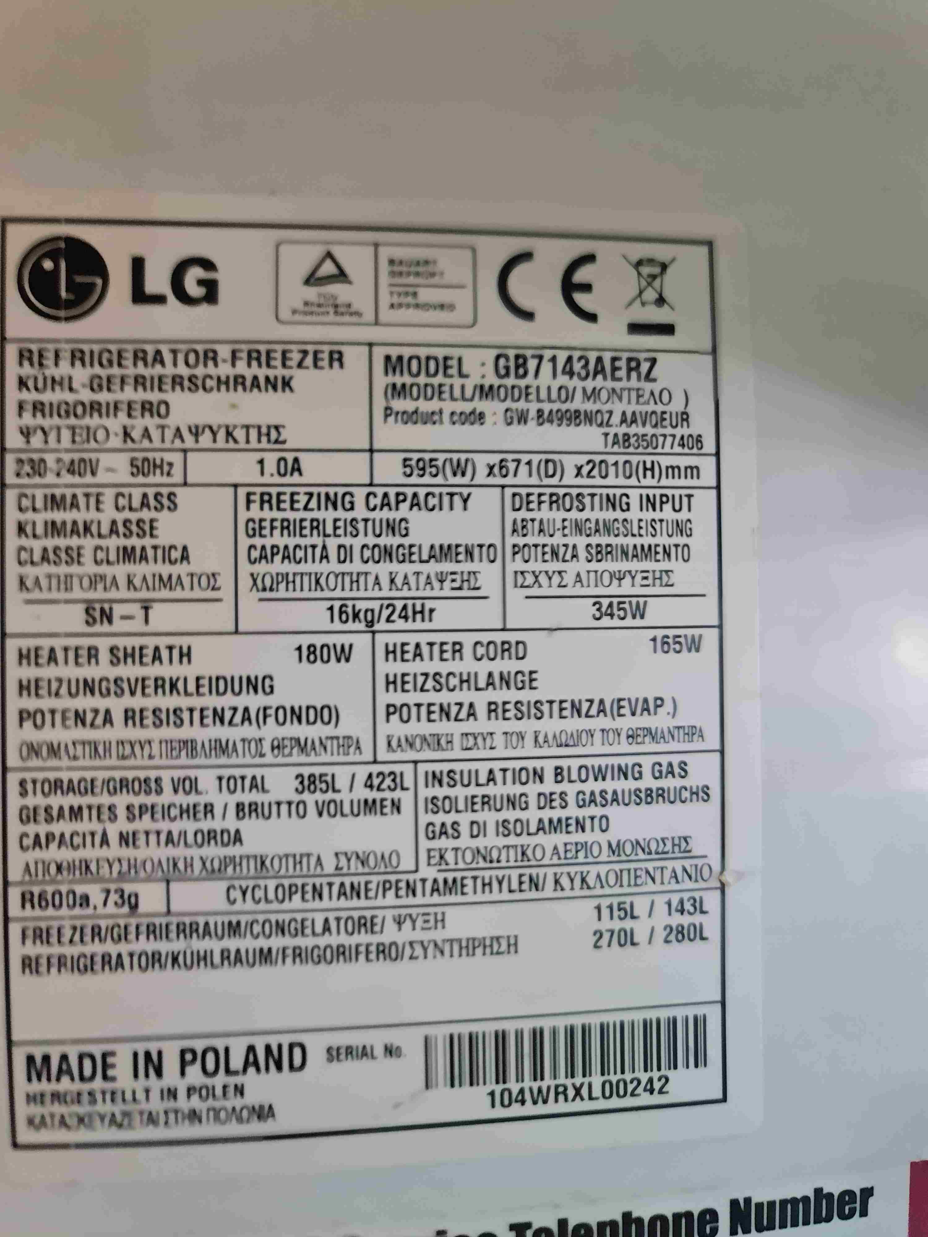 Buongiorno sono il possessore di frigorifero lg allego etichetta con il modello ho comperato una resistenza originale lg come modifica oer evitare il congelamento del tubo scarico condensa...chi mi può aiutare c Dove collegare i connettori..grazie -