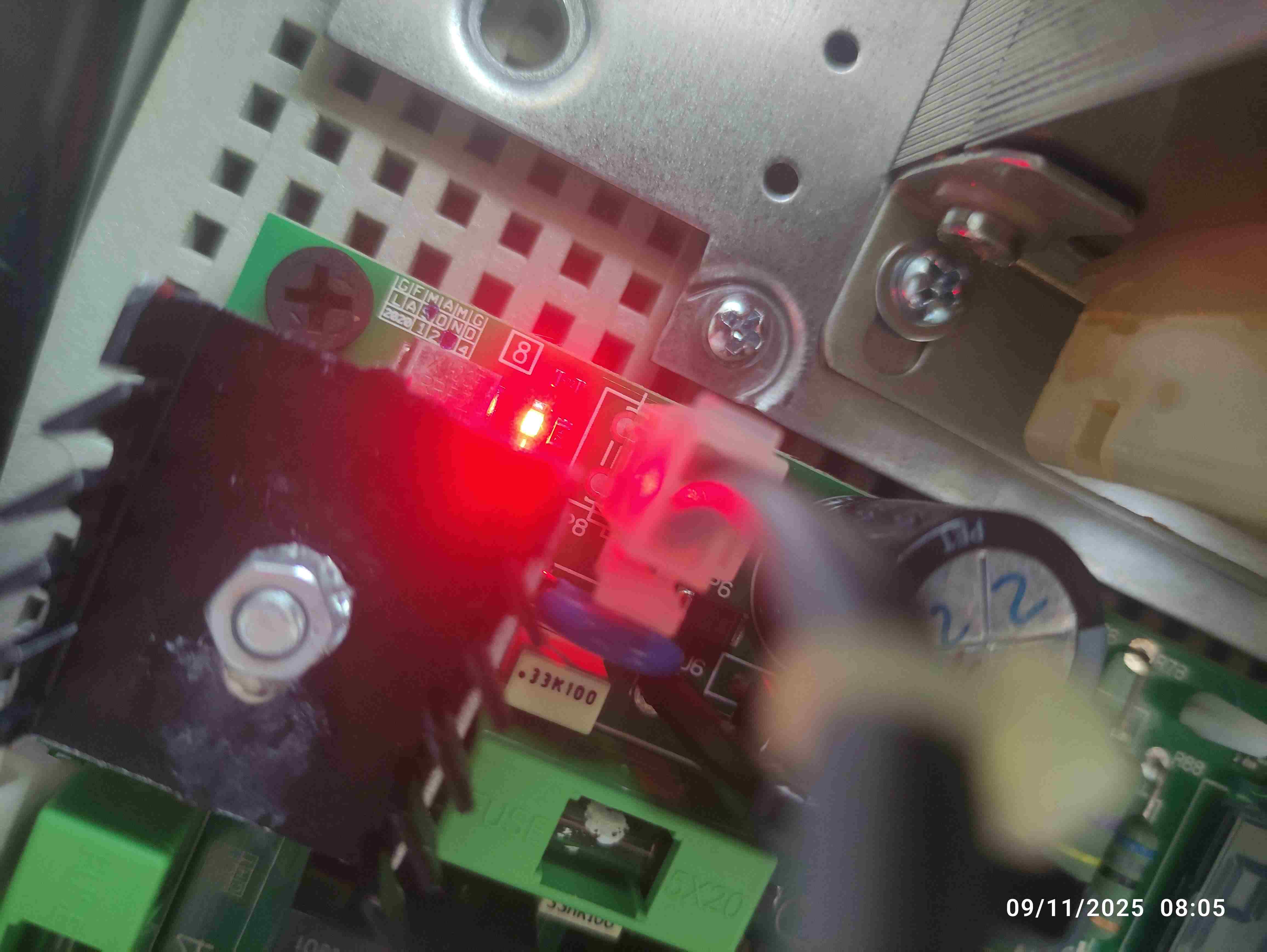 Innanzitutto grazie per avermi risposto, non ti nascondo che confidavo in una tua risposta, prima di pubblicare ho spulciato il sito in cerca di un argomento simile che potesse aiutarmi ed ho avuto modo di apprezzare le tue conoscenze in merito. Scusa se non ti quoto punto punto, ma non so farlo, cercherò comunque di rispondere a tutto. Dalla foto puoi vedere che è marchiata set 2023. Parlavo di errore perché a differenza di quando prenevo il radiocomando che il messaggio era visibile almeno per un sec. , lo stesso , quando il cancello provava la chiusura in autonomia dopo il lasso di tempo di pausa, non era visibile, compariva per una frazione di sec. (per capire il messaggio ho dovuto filmarlo e guardare il video in slowmotion) mi dava l'impressione di una interferenza. Come mi hai suggerito, ho scollegato il morsetto bero con i contatti 60/61 e tutto sembra funzionare perfettamente, ora non mi resta che attribuire la causa al selettore o al cavo, ma wuesto è il problema minore se tutto funzionerà correttamente nei prossimi giorni, voglio comunque ripristinarlo perché potrebbe comunque tornarmi utile, intanto riattacco la morsettiera con i cavi che provengono dal citofono (queli li collegai io stesso). Ho due coppie di fotocellule su 70 72 74, ma sembrando che vada tutto bene non ho proceduto a ponticellarle. In merito all'autoset, è stata la prima cosa che ho dovuto fare quando ho riattivato il cancello, in quanto mi hanno rifatto la pavimentazione e per agevolare le operazioni glie lo avevo staccato facendo apertura e chiusura manuale. Evidentemente hanno riposto il fermo esterno qualche cm più avanti, tant'è che alla riattivazione quando chiudeva mi dava er33 perché lo rilevava come ostacolo. Ho solo una domanda da rivolgerti se puoi aiutarmi, premetto che le logiche non sono state toccate, quello che impostai io stesso all'epoca era solo l'esclusione delle foto esterne in apertura perché mi è comodo avanzare un po' con l'auto mentre aspetto si apra completamente. Prima per bloccarlo definitivamente mi bastava premere il radio appena cominciata la fase di chiusura, facendolo in apertura invece andava in pausa per poi continuare l'apertura dopo alcuni secondi. Adesso invece la fase di pausa in apertura continua farla , quella di blocco in chiusura no, quando premo il radio in chiusura semplicemente inverte la marcia, ho dato una spulciata al manuale per vedere se dovessi reimpostare la funzione ma non riesco a trovarla. Grazie, scusa se mi sono dilungato - Oggi