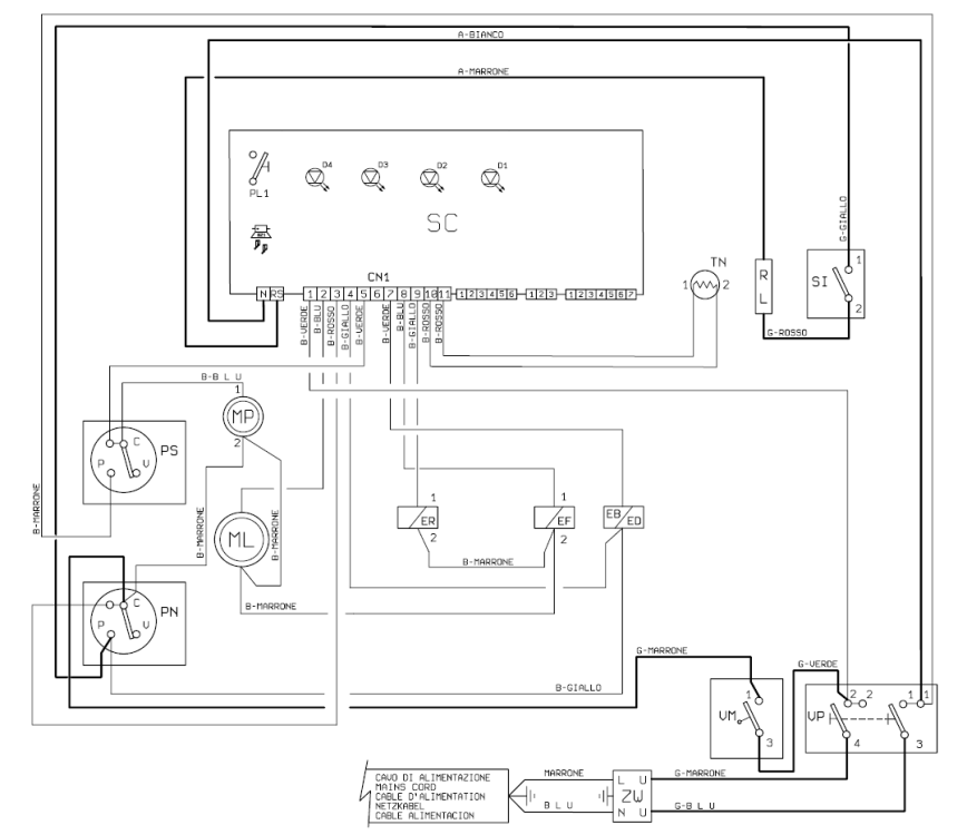 Ciao, buonasera. mi chiama il mio amico per vedere la sua lavastoviglie Candi CDI-1012. seleziona il programma, chiude lo sportello, inizia a scaricare, dopo qualche secondo fa un bip. ma non smette di scaricare. dopo qualche altro tempo bip e lampeggio fisso della spia del programma in corso. schema alla mano, la macchina non ha sensori antiallagamento. Ho scollegato il marrone al pressostato di sicurezza senza risultato, quindi e' la centralina che sta comandando la pompa di scarico. ho scollegato il giallo al pressostato di livello, ma niente. Ho come l'impressione che la centralina non sentisse il livello di vasca vuota, e non vada avanti col programma. suppongo che dopo un po' andra' in timeout e va in allarme. l'ho pensata bene ? Che si fa in questo caso ? sulla linea del giallo (pin 4 della centralina) ci sono due resistenze in serie e poi va al chip di controllo. si rimedia una centralina ? allego lo schema ! ciao. Norb.