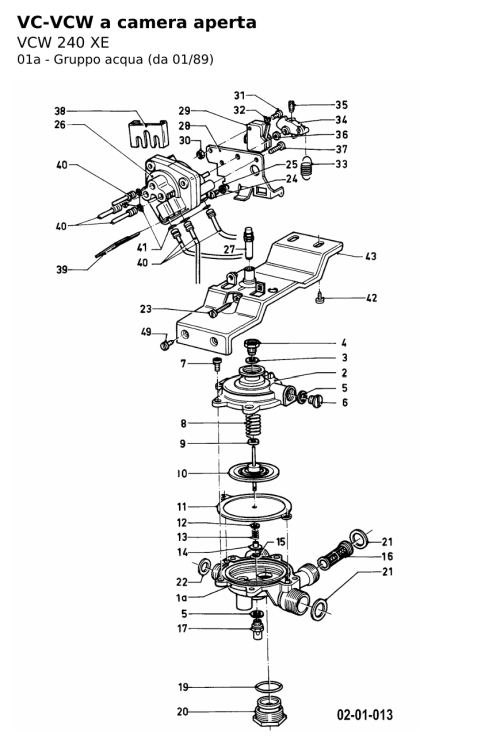 Buongiorno a tutti, Chiedo il vostro aiuto, se mi potete aiutare, per un problema che ho con la mia Vaillant Tecnoblock 240 XE, ho un problema con l'acqua calda, la caldaia si trova vicino la cucina mentre il bagno si trova un po' più lontano ad una distanza di circa 8 metri. Il rubinetto di entrata dell'acqua nell'appartamento di trova in bagno. Quando apro l'acqua calda in bagno arriva senza problemi mentre se la apro in cucina (vicino alla caldaia) la caldaia non sente la richiesta, per farla partire devo andare in bagno aprire il rubinetto dell'acqua calda per qualche secondo e si accende la caldaia a quel punto arriva l'acqua calda anche in cucina. Sono giorni che mi leggo il forum ed ho trovato che nella maggior parte dei casi il problema dipende dal gruppo acqua o in alcuni casi è chiamato valvola a tre vie (penso che sia la stessa cosa) come avrete capito non sono esperto, grazie al vostro aiuto sono riuscito a fare la manutenzione che ha permesso alla caldaia di arrivare ad una certa età. Il gruppo acqua ha una vite che non si svita e per evitare di rovinarla ho due strade o ne trovo uno usato e lo compro nuovo. Il mio gruppo acqua corrisponde alla versione 01a che corrisponde al seguente esploso: Chiedo conferma che sia quello giusto, vi allego la mia foto: Cercando su internet ho visto che per il gruppo acqua 011156 viene venduto un'altra versione che non è compatibile con il mio tubo di carico, vi mando altre foto per farvi vedere il problema: Con il nuovo gruppo acqua dato che il rubinetto di carico acqua viene spostato (fig 2) di conseguenza anche il tubo che si collega al rubinetto di carico deve essere spostato. Esiste un tubo di carico compatibile con il nuovo gruppo acqua? Putroppo non lo trovo. Mi potete aiutare? Avrei bisogno del codice. Grazie. -