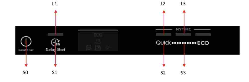 La prossima volta descrivi le prove che hai fatto sul relè, altrimenti 🤷♂️ Questa procedura è per modelli con pannello comandi (vedi foto), siccome tradotta (in automatico) é da interpretare Modalità di accesso al servizio, in un modello touch key, dopo il reset del programma in corso e lo spegnimento/accensione, premi contemporaneamente il pulsante S1+S3 per almeno 3 secondi per accedere alla modalità di assistenza. L1, L2 e L3 lampeggiano per indicare che si accede alla modalità Assistenza. Dopo aver effettuato l'accesso alla modalità: 1. Premi il pulsante S1 per mostrare il primo codice di allarme. L1 lampeggia per indicare che la macchina è in lettura dell'allarme. Il primo codice di allarme salvato viene mostrato dalle sequenze lampeggianti dell'icona del sale e del risciacquo. Ad esempio, "i43" viene mostrato come icona Salt Lampeggia 4 volte + L'icona del risciacquo lampeggia 3 volte + L'icona del sale lampeggia 4 volte + L'icona del risciacquo lampeggia 3 volte... 2. Premere nuovamente il pulsante S1 per mostrare il secondo codice di allarme. 3. Premere ancora una volta il pulsante S1 per mostrare il terzo codice di allarme. 4. Premere il pulsante S1 la quarta volta per passare a testare (alcuni componenti) … Spegnendo l'apparecchio premendo il pulsante On/Off (S0) si uscirà dalla modalità di assistenza. -