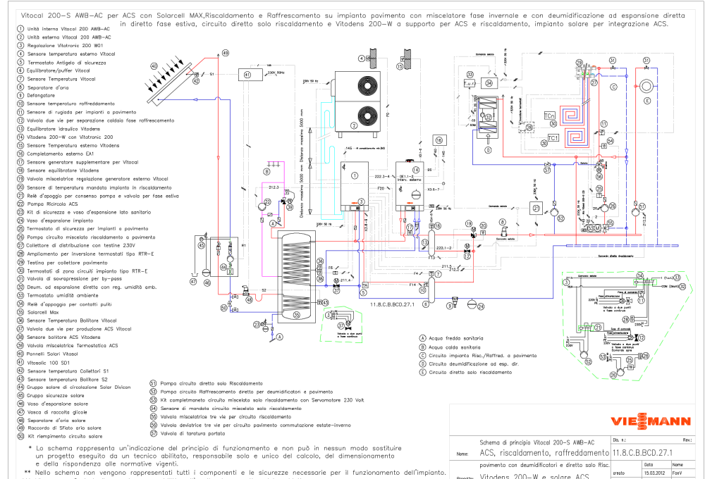 Anzitutto grazie a tutti delle risposte @Alessio Menditto, @reka, @DavideDaSerra Ho un paio di domande ancora se avete pazienza... Allora confesso che la situazione in cui tutti gli attuatori sono chiusi penso si sia già verificata più volte (per il fatto che sono a metà della "domotizzazione completa" dell'impianto ancora non ho tutti i dati nell'assistente domotico -- HomeAssistant nel mio caso). Per fortuna la pompa non è andata in blocco (quando un termostato pilota l'apertura del circuito si sente il calore arrivare dal pavimento). Attualmente le curve climatiche sui miei impianti Viesmann (in realtà ho due macchine: una PdC e una caldaia a condensazione) sono rispettivamente: * Inclinazione curva climatica VITODENS: 0.8, con scostamento 2K * Inclinazione curva climatica VITOCAL: 0.7, con scostamento 2K Proverò a ridurre le inclinazioni. Perdonami cosa intendi esattamente? Intendi spegnere anche la caldaia quando tutti gli attuatori sono spenti? Su questo aspetto son sincero: ancora non ho capito come faccia la caldaia/Pdc (*) a decidere a che temperatura scaldare l'acqua in quanto non ha alcuna connessione con i termostati di casa. Penso che si basi sulla temperatura esterna (ho un sensore Viesmann montato in esterno) e forse la temperatura che rileva dalla linea di ritorno? Immagino che la caldaia/PdC smetta di scaldare quando la differenza fra mandata/ritorno è inferiore ad una certa soglia? (*)diciamo che al 99% mi funziona la PdC e la caldaia a condensazione è ferma; quindi caldaia=PdC in questo contesto Dunque lo schema del mio impianto dovrebe essere il seguente... io ho cercato ma il bypass se c'è non lo vedo... Mi sto perdendo qualcosa? Spero di averlo questo bypass in quanto altrimenti non capisco come fa la pompa a non essere finita in blocco.... ok nel mio caso sto cercando di domotizzare il sistema e mi viene facile implementare in HomeAssistant una regola del tipo "quando si verifica che tutti gli attuatori sono spenti, apri/chiudi un contatto". Tuttavia per ora la pompa di circolazione è collegata direttamente alla PdC Viesmann e lei la tiene sempre accesa... dovrei mettere un contatto pulito in serie alla pompa... però mi piacerebbe di più una soluzione "a prova di bug" (in cui anche se HomeAssistant si pianta non succede nulla di brutto alla pompa)... -