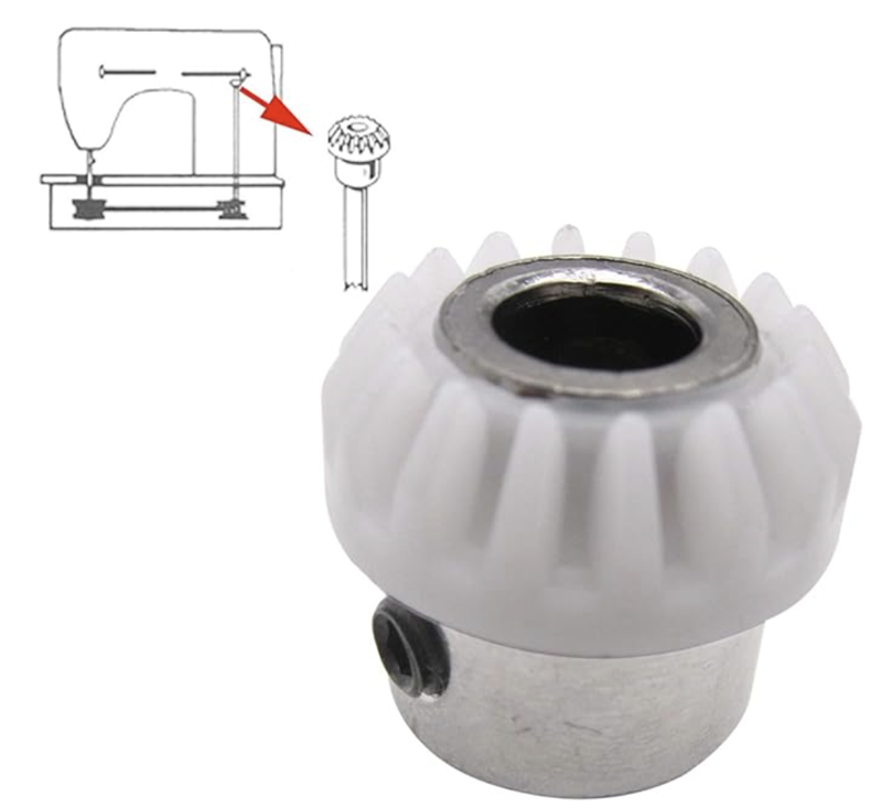Solo per segnalare che sono finalmente riuscito a sostituire l'ingranaggio in plastica dell'albero verticale. Riassumo quanto fatto sulla Singer 257 che è tornata a funzionare: potrebbe essere di aiuto per altri. Il foro di cui si parla in seguito ha permesso di evitare di smontare molti meccanismi complessi da reinstallare. Rimuovere la cinghia dalla parte inferiore della macchina da cucire. Rimuovere il coperchio superiore, sarà visibile l'ingranaggio consumato. Con un cacciavite/scalpello e martello, rompere e rimuovere l'ingranaggio originale: è in plastica ed è fuso sull'albero verticale. Per non smontare i meccanismi della parte superiore della macchina (albero principale, leve, molle, altro), praticare un foro da 5mm come quello in immagine (sufficiente per introdurre un cacciavite fisso). Sfilare dal basso l'albero verticale (su cui era collegato l'ingranaggio rovinato): ripulirlo, ingrassarlo un po'. Posizionare l'ingranaggio di ricambio esattamente dov'era il vecchio (si riesce aiutandosi con un cacciavite) con la vite laterale orientata verso il foro. Riposizionare l'albero verticale facendo attenzione ad infilare la parte superiore nel nuovo ingranaggio. Fissare il nuovo ingranaggio usando un cacciavite fisso attraverso il foro praticato al punto 3. Usare poi un tappo copriforo bianco per chiudere il foro. Riposizionare la cinghia ed eseguire una prima messa in fase della macchina facendo attenzione che durante la rotazione manuale non si blocchi nulla: in caso di blocco, rimuovere la cinghia dalla puleggia di destra e spostarla di un dente in senso orario, quindi riprovare.* Se tutto funziona, oliare i meccanismi metallici (senza eccedere), ingrassare gli ingranaggi, provare a cucire. * = Mi riservo di farla verificare al personale competente quanto prima. -