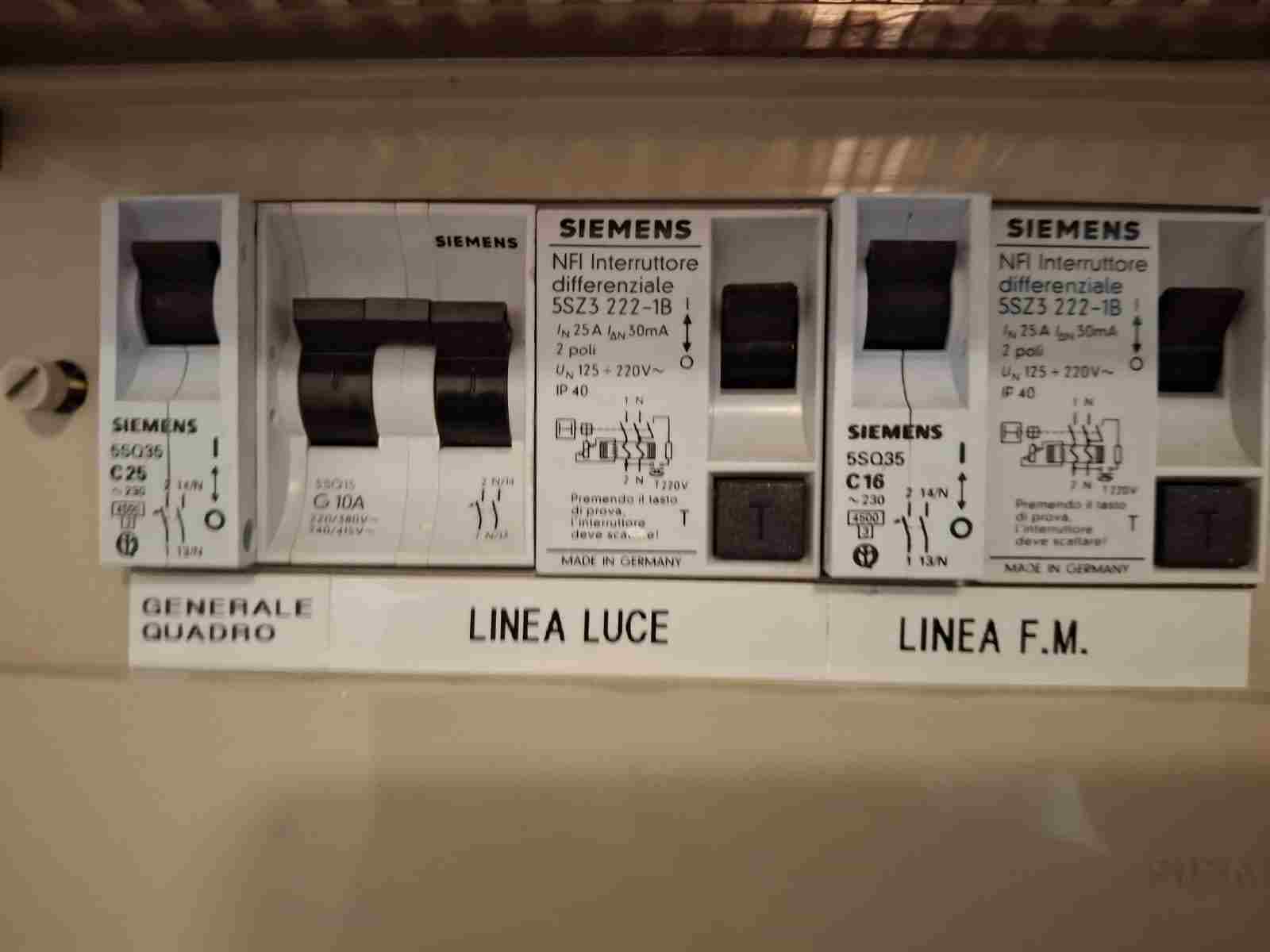 Buongiorno a tutti e ben ritrovati. Sto cambiando destinazione d'uso da ufficio ad appartamento. A breve mi installeranno la cucina, quindi ho fatto predisporre scarichi nuovi, ho fatto tirare tubo corrugato per lavatrice in bagno, lavastoviglie, forno, cappa e frigo in cucina e anche per il piano induzione. Tutte linee indipendenti che arrivano nella scatola di derivazione sotto il quadro principale che è ad un paio di metri dalla cucina e a 5 dal bagno. Quello che ho già fatto è tirare la linea da 2,5mmq verso la lavatrice collegandola sotto la linea da 16A. Se avessi spazio in quadro avrei azzardato ad arrangiarmi ma, come si vede dalla foto, mi manca spazio per aggiungere un MT dedicato per l'induzione, pensavo da 20A (anche se qualcuno mi ha detto che basta 16A).... ho già tirato la linea da 4mmq. Domanda, premesso che momentaneamente rimarrò con i 3KW ma sono intenzionato a passare ai 4.5KW a breve.... Guardando il quadro, se perdendo selettività, uno dei DIFF lo mettessi a valle del MT da 25A generale e ne togliessi uno dei DIFF, guadagnerei 2 moduli dove potrei aggiungere un MT da 20A per l'induzione. Mi consigliavano addiritture un MT+DIFF tipo A per il piano ad induz. Dovrei prevedere altro? Il potere di interruzione generale da 4500 è sufficiente? Vorrei spendere il meno possibile oggi... un domani magari si vedrà... Grazie Rossano Consigli? -