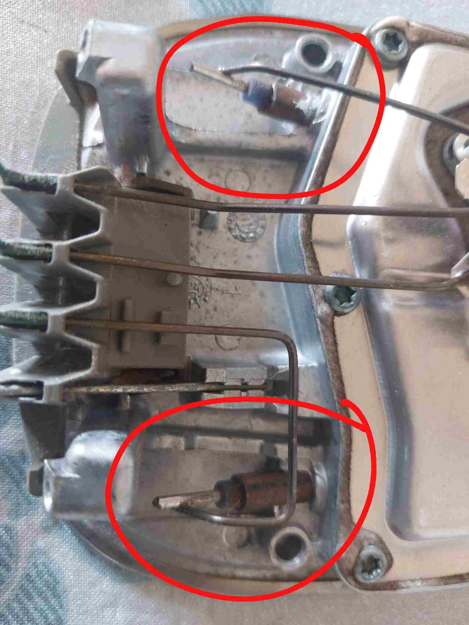 Il termofusibile è assemblato nella piastra , quel pistoncino di ceramica che esce dalla piastra deve spingere un contatto , si è fuso e ha aperto il circuito , se colleghi i puntali sui faston del termostato , risulta aperto , si deve cambiare la piastra -