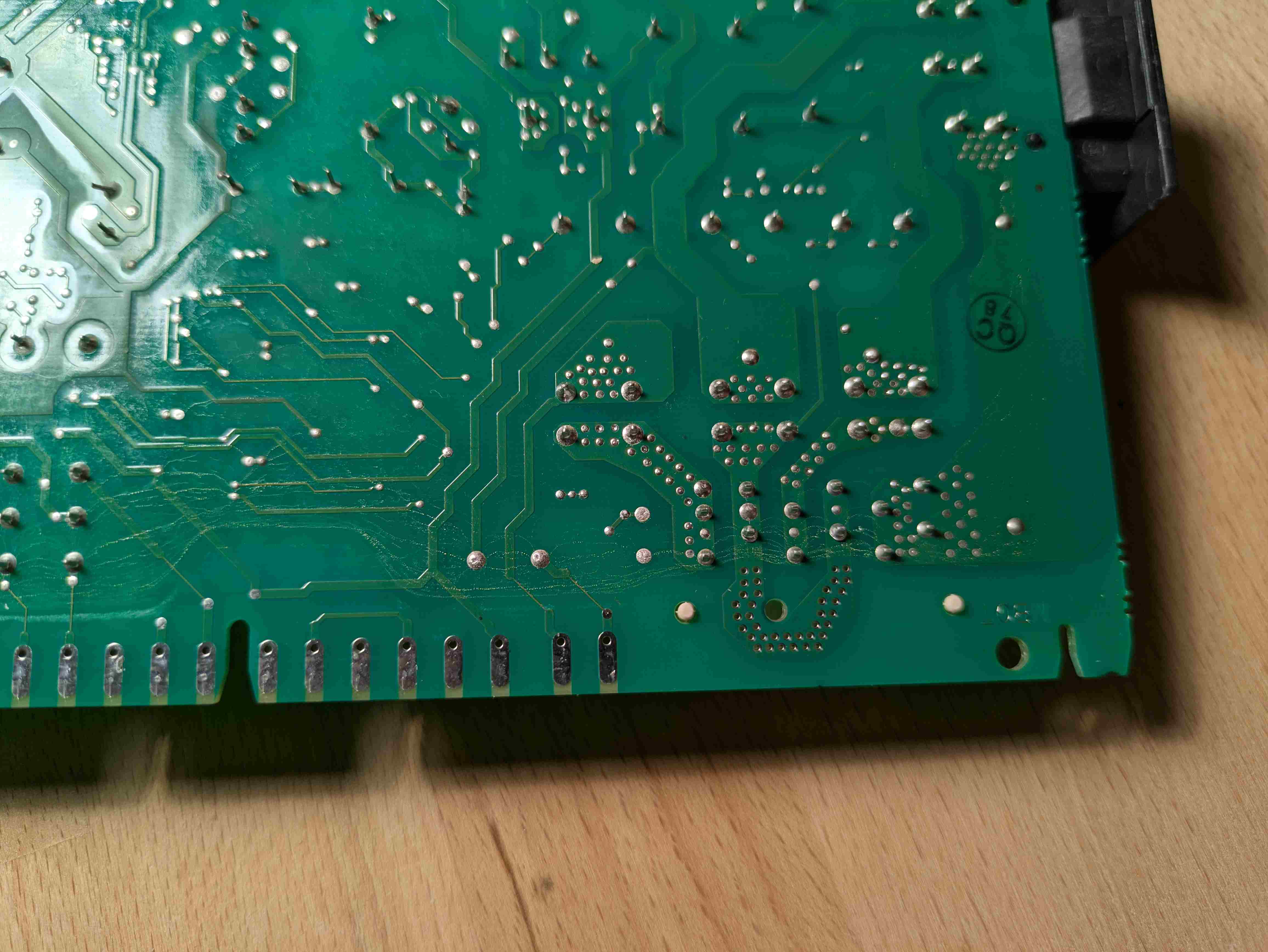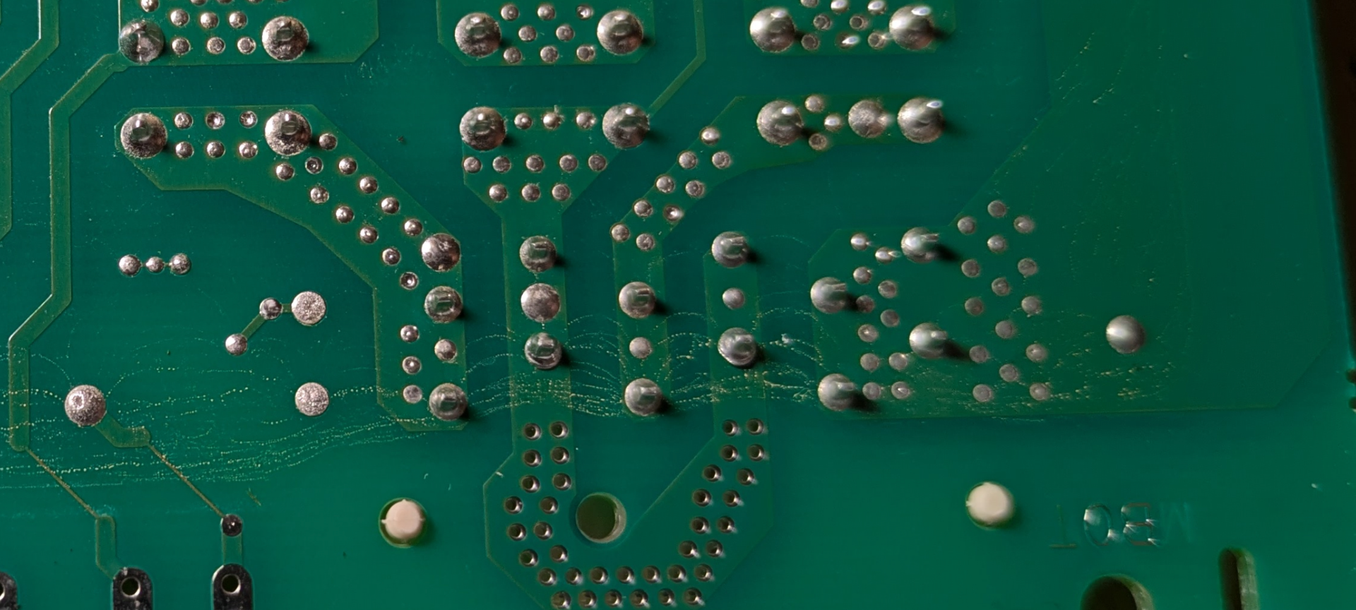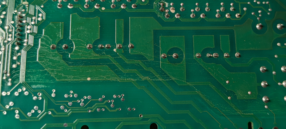 Ho estratto la scheda di potenza, anche qui sembra tutto ok. Tracce piccolissime di qualche sale nella parte dietro del pcba (quella rivolta verso il serbatoio di zeolite) disposte come se seguissero le linee di campo elettrico (allego foto). Solo sui reofori a tensione di rete, non sulla bassa tensione. Pulite facilmente con alcool. Elettrolitici visivamente ok. Prima di rimontarla li sostituirò comunque dato che mi costa relativamente poco. Contatti connettori ok, non ossidati. Resistenza zeolite 34 ohm. Verso terra misuro piu di 10 Mohm. Ventilatore zeolite funzionante (ricordo il rumore "normale" che ha sempre fatto). Non so che altro guardare.. chiedo aiuto. -