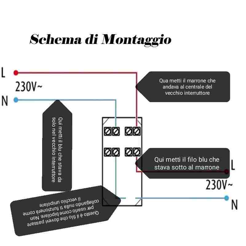 Volendo se non ti va di passare il filo puoi usare il bipolare che hai comprato alla stregua di un unipolare. Basta collegare i fili come segue: Il ponticello non va più fatto. -
