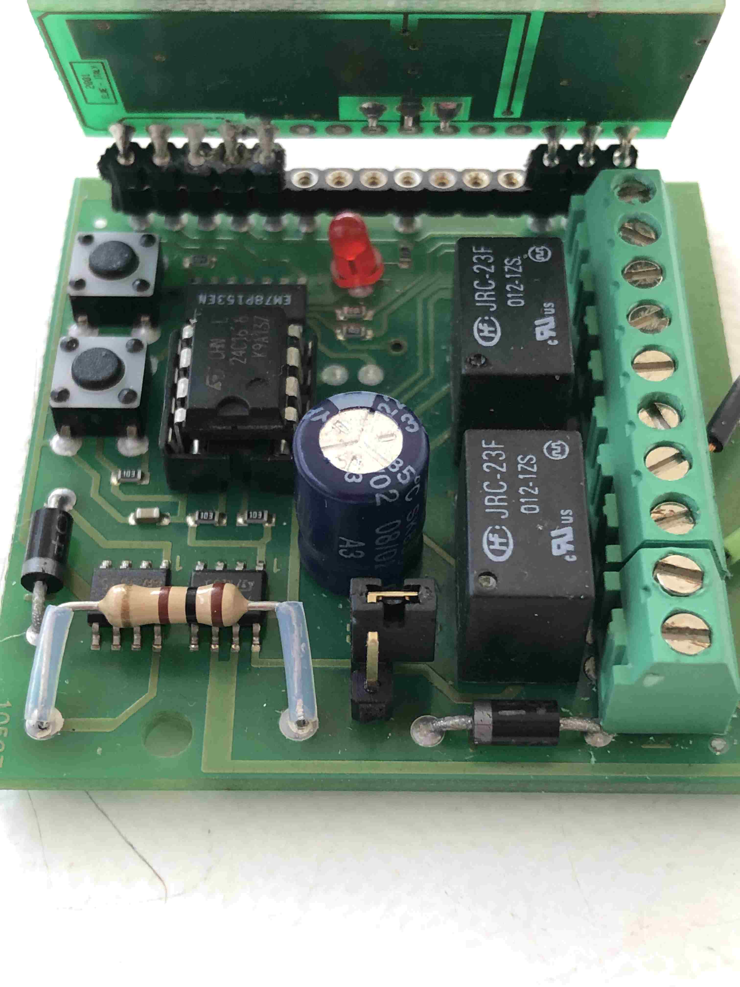 Buonasera. In un cancello scorrevole Faac in una scatola di derivazione a parte ho trovato i due circuiti elettronici che allego; non ho capito il funzionamento della schedina con i due tastini; l'altra scheda con i telecomandi funziona da ricevente; ma se si dovesse programmare un altro telecomando non si potrebbe fare? e la schedina con i due tasti qualcuno di voi la conosce? Grazie -