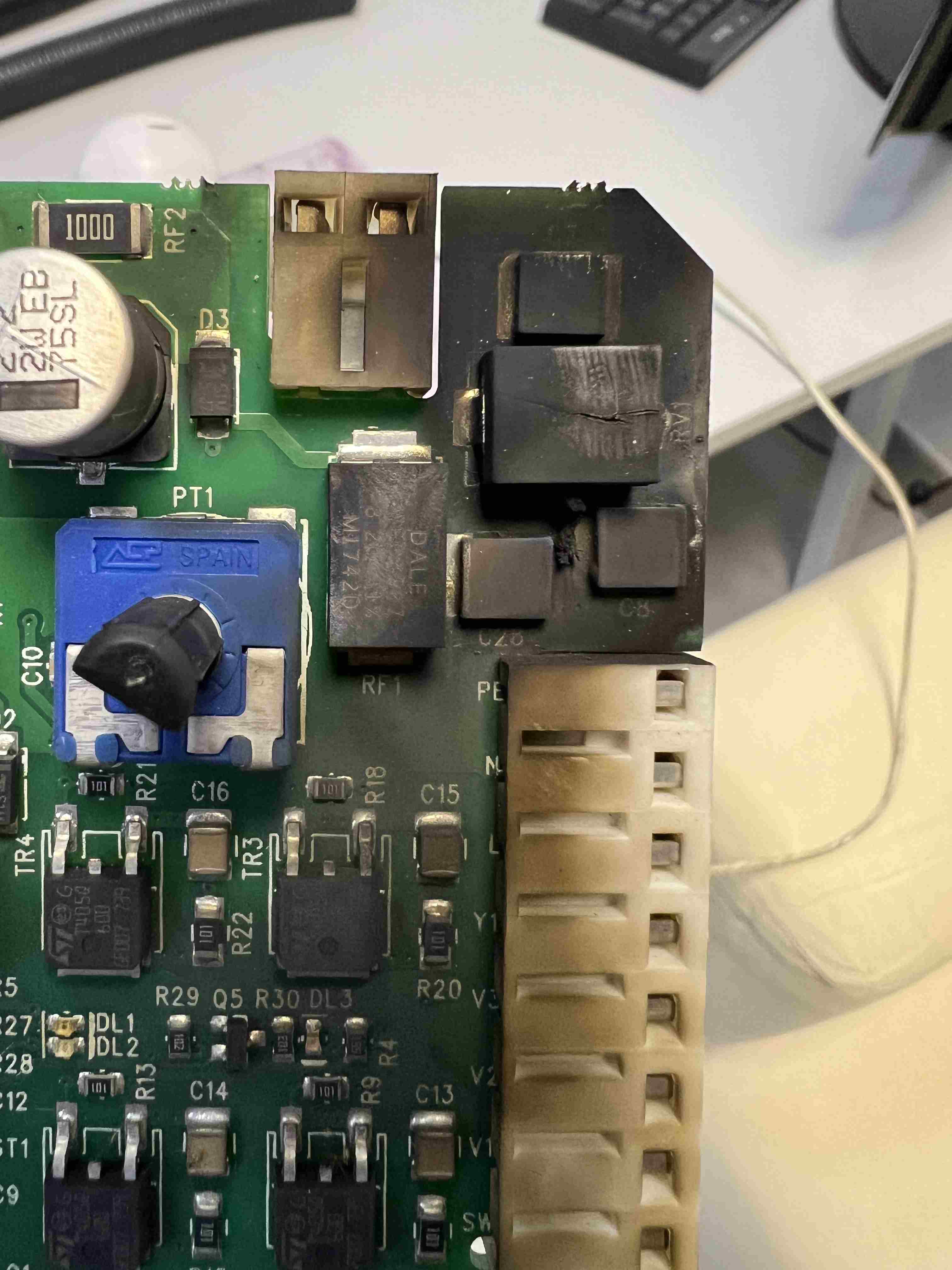 RV1 è un varistore. Che sia saltato su entrambe le schede è sospetto e fa pensare che sia stato sbagliato il collegamento. -