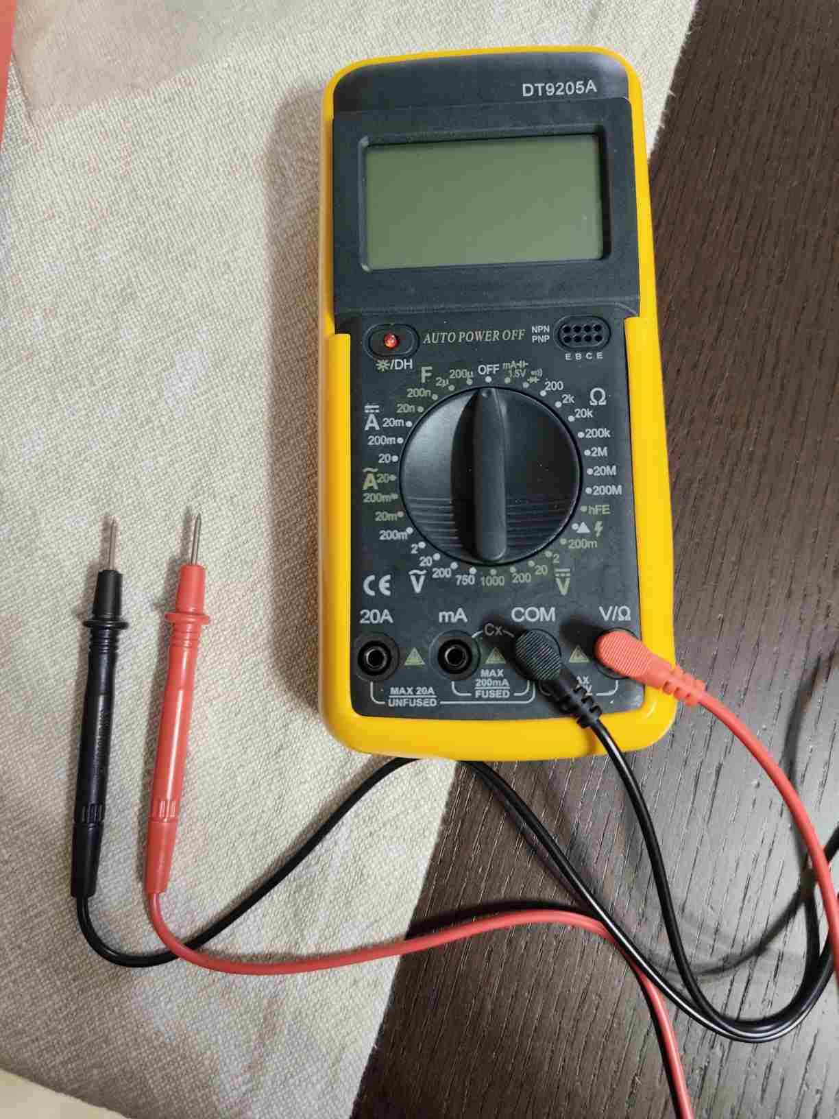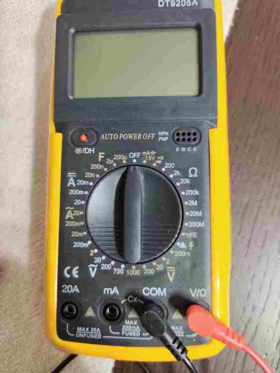 13. Allora in play non ho nessun problema, una cassetta registrata esce perfettamente sia sulle casse dell' impianto sia sul display con i led che segnano normalmente l' uscita. In rec semplicemente non arriva il segnale del canale sinistro. Ovviamente ho già verificato la continuità del connettore RCA con il connettore sulla scheda madre... Ecco il multimetro digitale di cui dispongo