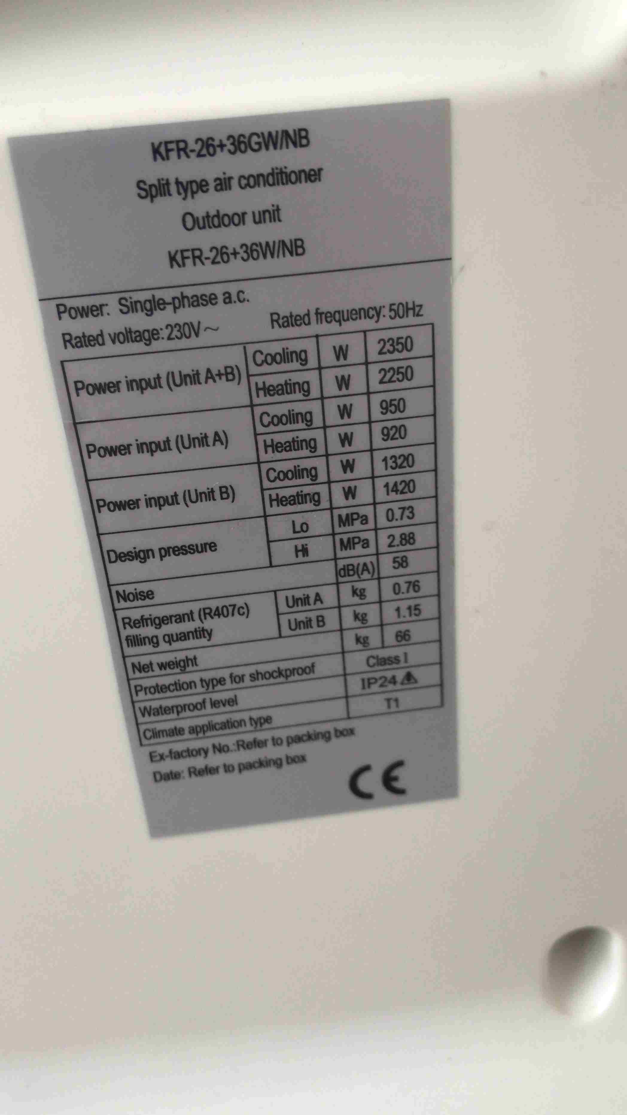 Buongiorno, ho bisogno di un consiglio, mi è stato regalato un condizionatore ancora imballato, so che è cinese e che è fuori produzione, ma visto che mi è stato regalato vorrei sfruttarlo….. Non esiste manuale all’interno e non riesco a capire quanti btu e’… La descrizione dice. KFR 36+26 w/nb, sapreste dirmi a quanti btu equivale?