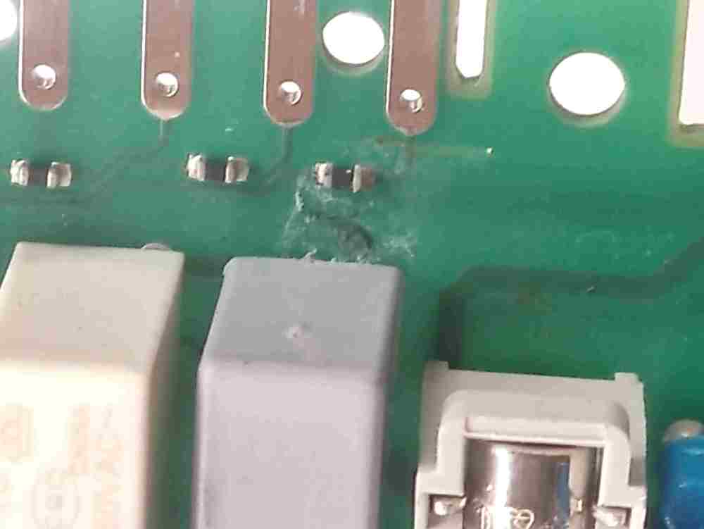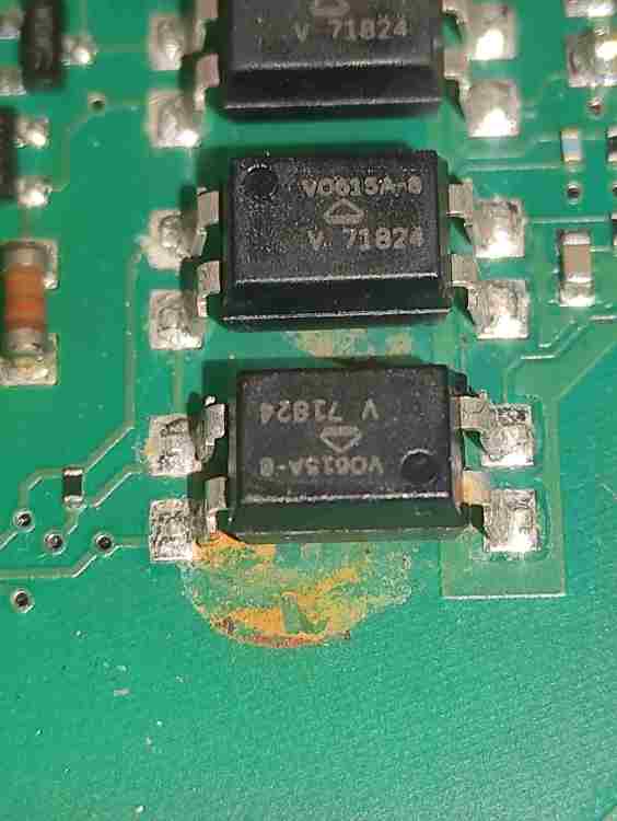 Premesso che da qui è difficile,in effetti le saldature dei fotoaccoppiatori(v615a) sembrano brutte e una ripassata male non gli farebbe. Smonterei la scheda(occhio ai condensatori che restano carichi,andrebbero scaricati con una resistenza)e con una lente guarderei tutte le saldature della parte posteriore della scheda. Dopodichè passerei a testare i relè però devi avere l attrezzatura giusta Per dissaldarli e provarli a banco