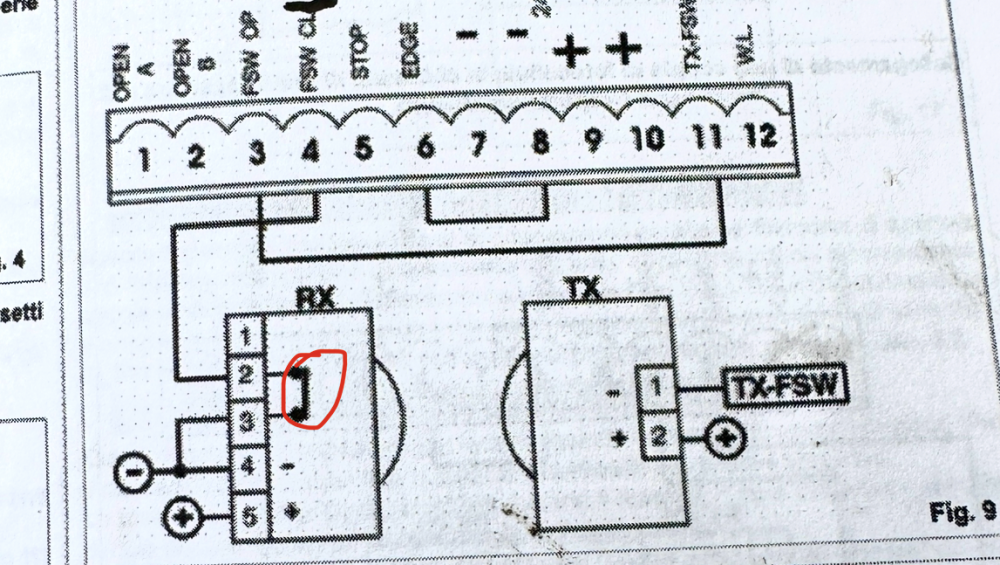 Innanzitutto grazie a tutti per le risposte. Sono consapevole che i collegamenti sono brutti, infatti li rifaccio tutti per bene quando sono certo del funzionamento di tutto. Parto dalla fine: Non ho toccato i collegamenti del motore, ho notato anche io dalla foto il morsetto 14, hai ragione. - Grazie del consiglio sulla ricevente, non sapevo se andasse tenuta o meno, allora la tolgo. - allora provo a vedere la RP2 - in effetti di solito segna 00, poi quando apre e chiude cambiano i codici, funziona sia in apertura che in chiusura con i codici corretti e legge i fine corsa. - proprio per quello chiedevo come fare i collegamenti delle fotocellule, perchè non sono sicuro siano giusti. Non ho fatto la programmazione, volevo essere prima certo che fossero corretti i collegamenti. Per ora ho portato 4 cavi dalla RX e 2 alla TX FSW vi sarei grato se mi spiegaste come sono i collegamenti. Le coste le ho già ordinate, ahimè non erano nel kit e le ho dimenticate in fase di acquisto. -