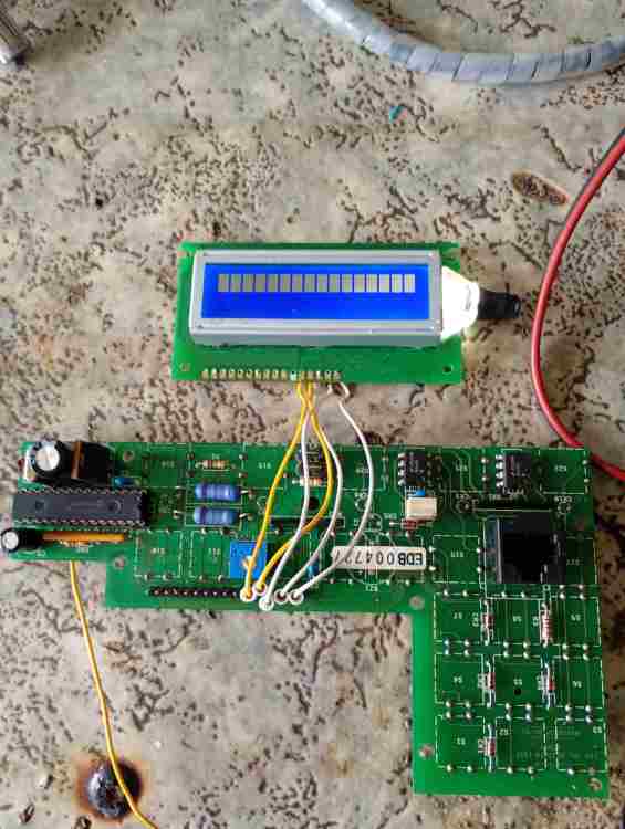 allora per prova ho smontato il display, ho riparato il led di retroilluminazione per vedere cosa si vede provato a collegare volante e questo e quello che si vede solo quadratini, ho provato ad alimentare solo il diplay e si vede solo la retroiolluminazione i quadratini si vedono solo se collego il pin 3 contrasto ,se aggisco sul trimmer il contrasto funziona se stacco il pin 3 i quadratini scompaiono. domanda, perche' le scritte non appaiono? devo collegare dell'altro? sara' il display ko? e la terza volta che provo a domandare cosa facessero quei due integrati ma non ho avuto risposta. altra domanda numeri o lettere del display dovrebbero vedersi anche ad alimentarlo singolarmente? se si mi sa' allora che e ko. aspetto qualche dritta grazie. a ho tolto e rimesso il processore il display non varia sempre cosi. -
