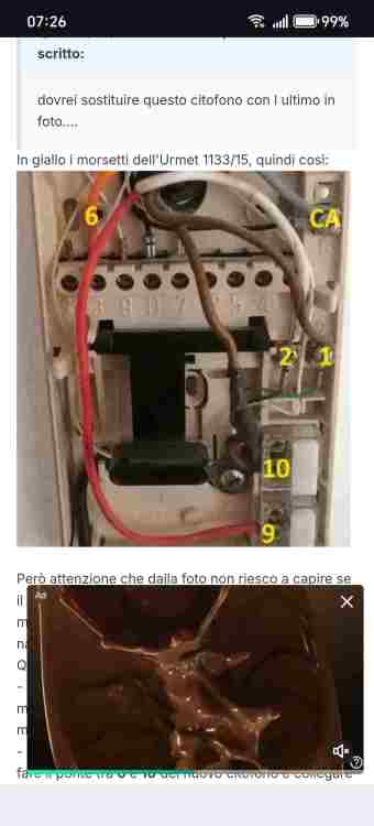 ciao a tutti ho provato a fare da solo ma dopo tanti tentativi.. eccomi qui , allego foto . IL mio problema al momento è che NON riesco ad aprire il portone ( con la linguetta .., i pulsanti neanche li ho collegati ) e se qualcuno citofona NON sento lo squillo. Riesco invece a sentire le voci giu al citofono e quando parlo mi ascoltano. Nella foto ho messo piu info possibili , ad ogni modo nel vecchio urmet si vede un cavo nero che in realta era collegato insieme a quello arancione ( avevo messo un pulsante in basso per attivare/disattivare la suoneria ) grazie a tutti per l'eventuale aiuto , Simone -