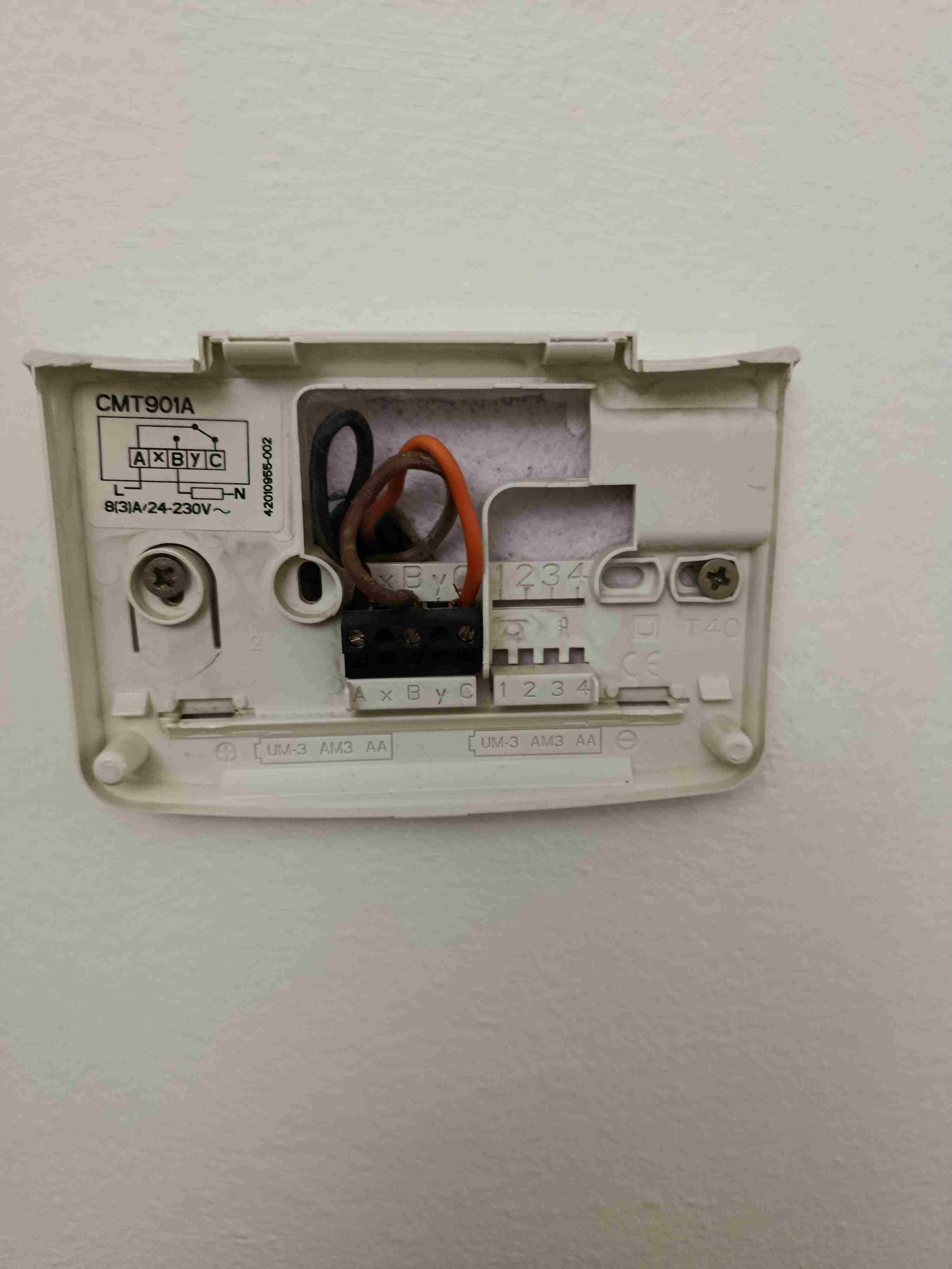 Ciao a tutti, vorrei sostituire il vecchio termostato in oggetto alimentato a batterie. L' impianto di riscaldamento ha le valvole a zona, e la temperatura sui termosifoni viene modulata, non funziona in semplice On/Off a 60 gradi Trovo collegati 3 fili, come da foto allegata. Il nero che ha i 230 v sempre attivi. Nel nuovo termostato wifi, servono 2 fili per alimentazione a 230 volt. Vorrei utilizzare il nero come fase, e il neutro che ricavo facilmente da una presa prossima al termostato. Collegherei il marrone sul COM del nuovo termostato e l Arancione sul contatto NA Potete confermarmi lo schema? Vi ringrazio in anticipo. -