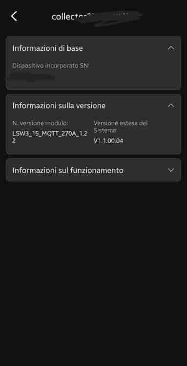 AGGIORNAMENTO: La Stick Logger è in funzione, la compatibilità del firmware LSW3_15_MQTT_270A_1.22 ha fatto tornare in funzione tutto il monitoraggio del sistema tramite app Solarman Chiedo ad eventuali amministratori di poter chiudere la discussione e segnare come risolto ☺️ -