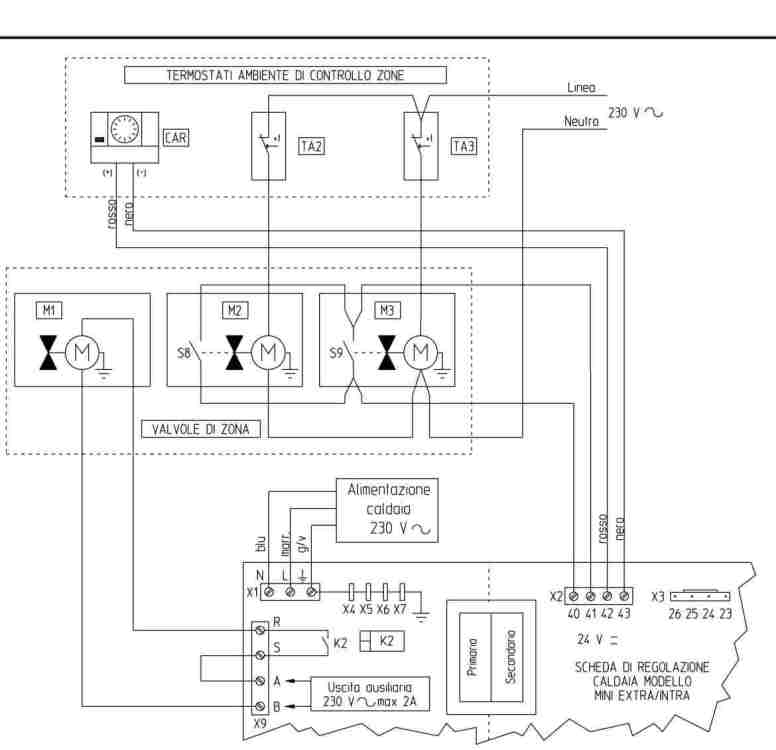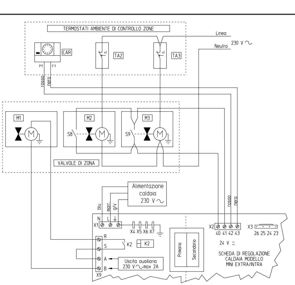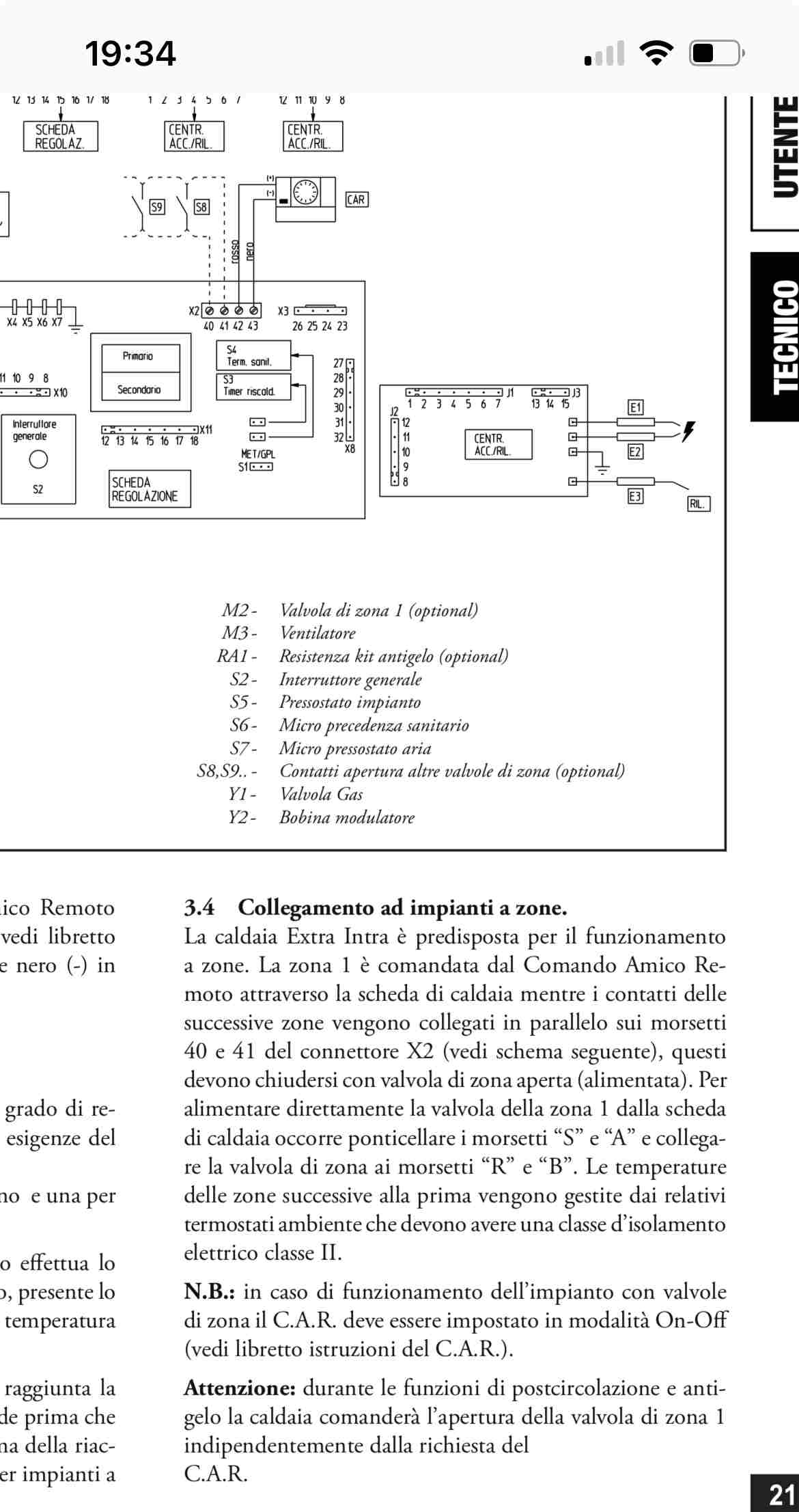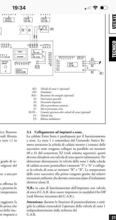 Questo è lo schema della tua caldaia . Il 40 e 41 non ha ponte , ma va collegato ai contatti del tado . Come riferimento in scheda , altre zone . Dopo la “prima “ che non c’è visto che la dovrebbe comandare il car . -