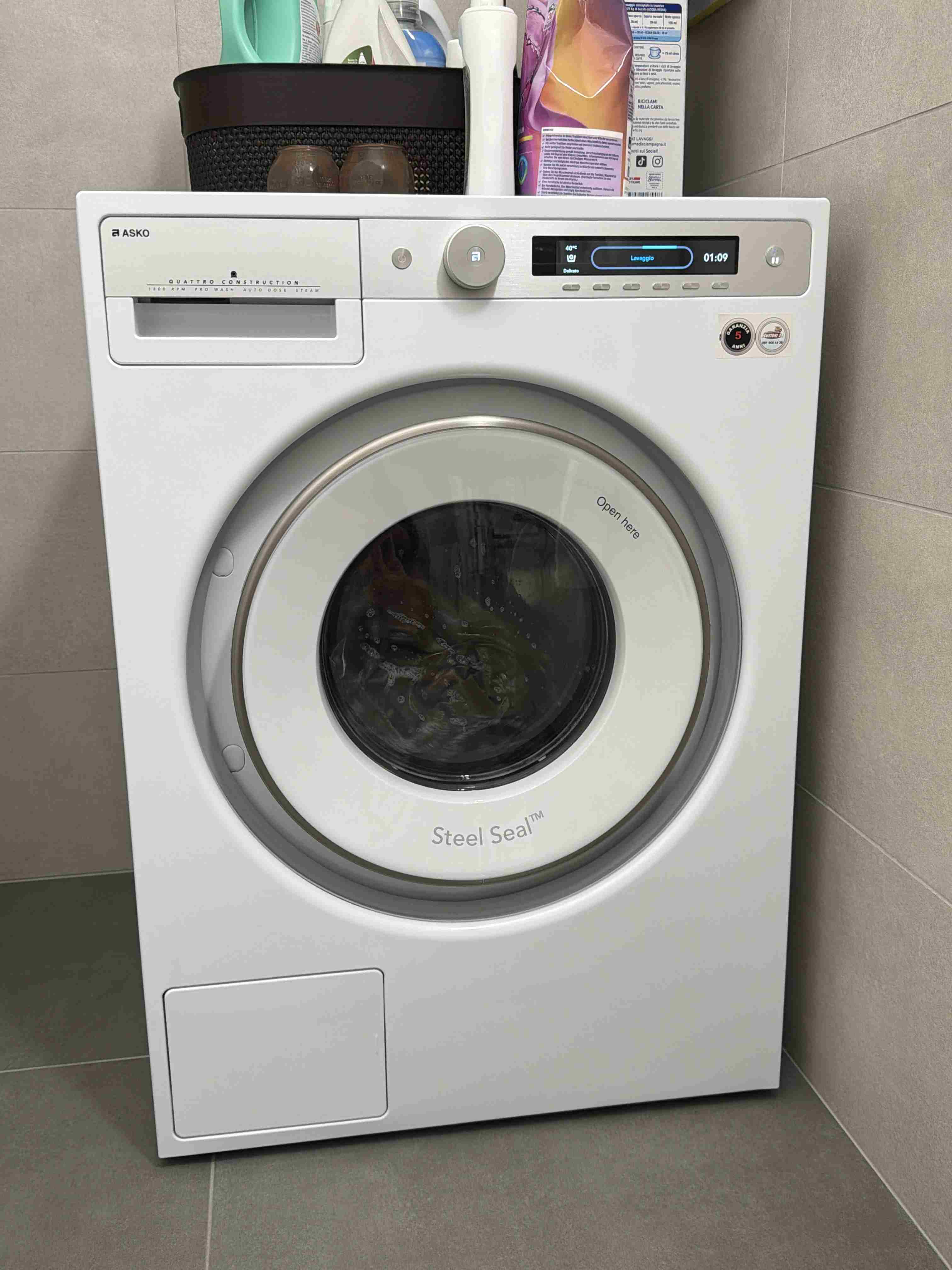 Ho smanettato un po' e cambiato il carico di biancheria da 9 a 8kg. I programmi non si sono accorciati. Adesso l'ho fatta partire a vuoto col Cotoni 90 gradi. Il livello dell'acqua mi sembra molto alto nonostante non abbia attivato l'opzione apposita. Il tempo iniziale s'è accorciato di 35 min dopo 4 minuti. La lavabiancheria è una bestia possente. Ciò che ho notato è la silenziosità rispetto alla mia vecchia VZUG.