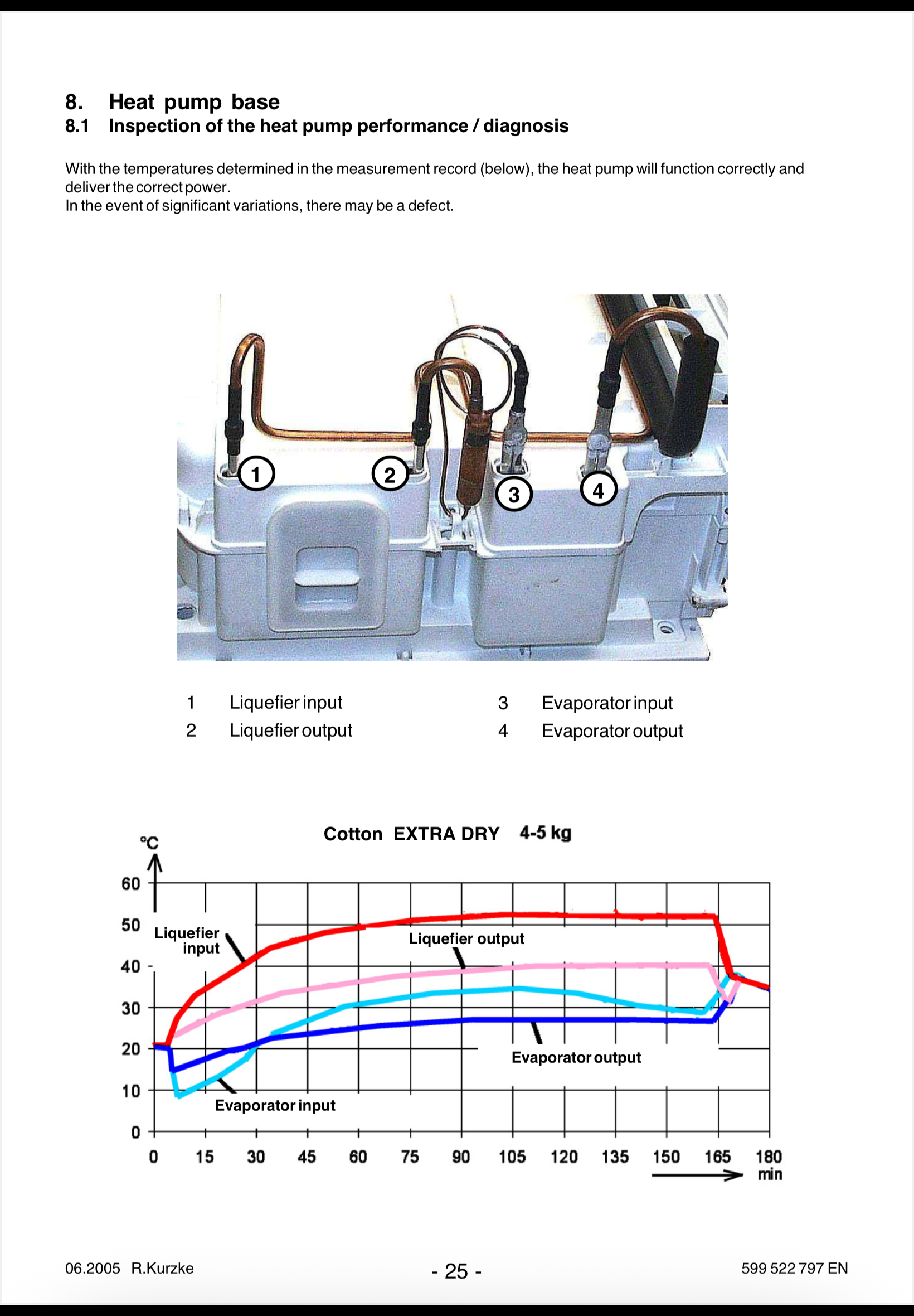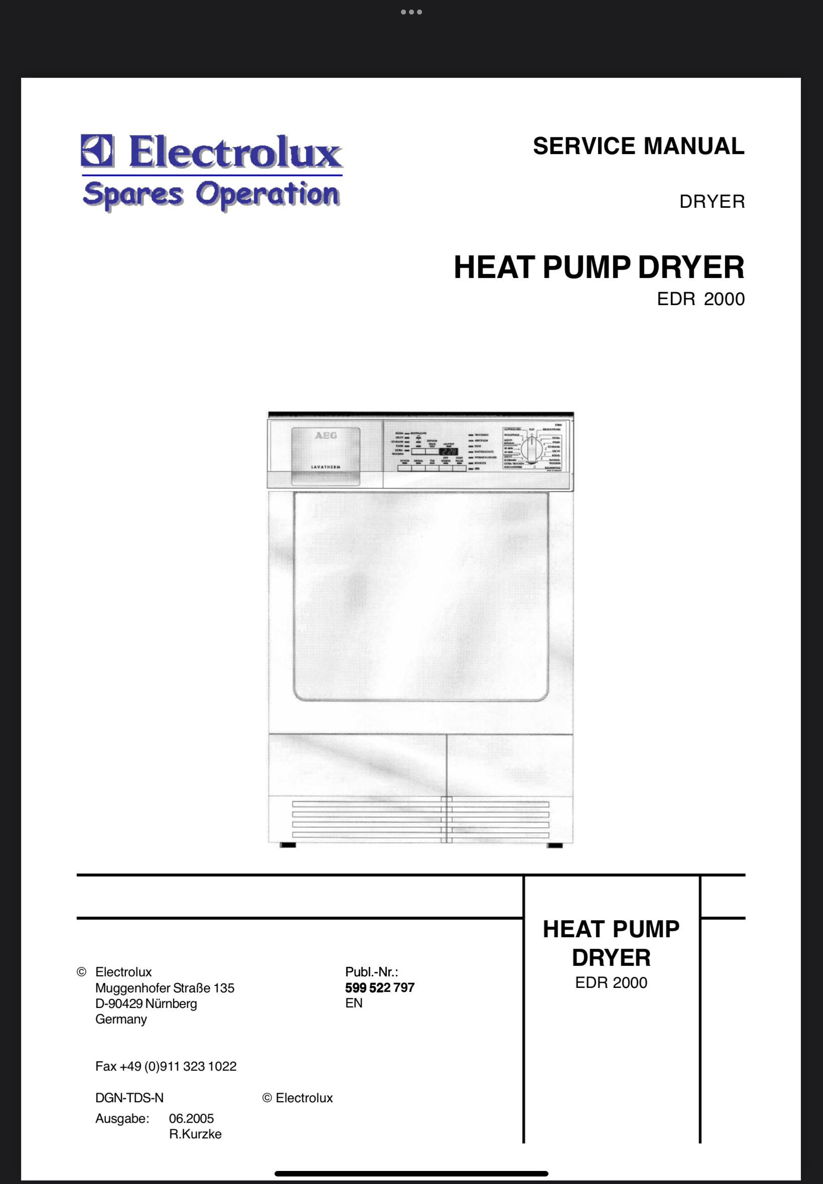 Ho provato con un asciugamano non molto bagnato e strizzato, come appena uscito da lavatrice + centrifuga: messo programma manuale 1h30 circa. asciugato a metà e niente acqua di condensa in cassetto e vasca inferiore. il fatto che manchi la condensa mi fa pensare che: - non scorre abbastanza aria calda nel tamburo e a seguire nell’ evaporatore (che dovrebbe catturarne l‘umidità). -e/o la temperatura dell’aria calda non é ancora sufficiente le curve di temperatura a cui ho fatto riferimento (compatibili con i valori che ho misurato e che riportava anche nik-nak) sono prese dal service manual del quale allego copertina. quella macchina ha parte elettrica, elettronica e meccanica identiche alla mia AEG, cambia solo il pannello comandi: la mia ha il display lcd) invece dei led sui pulsanti. Ganimede, da quale service manual hai preso le curve che hai postato qui sopra? -