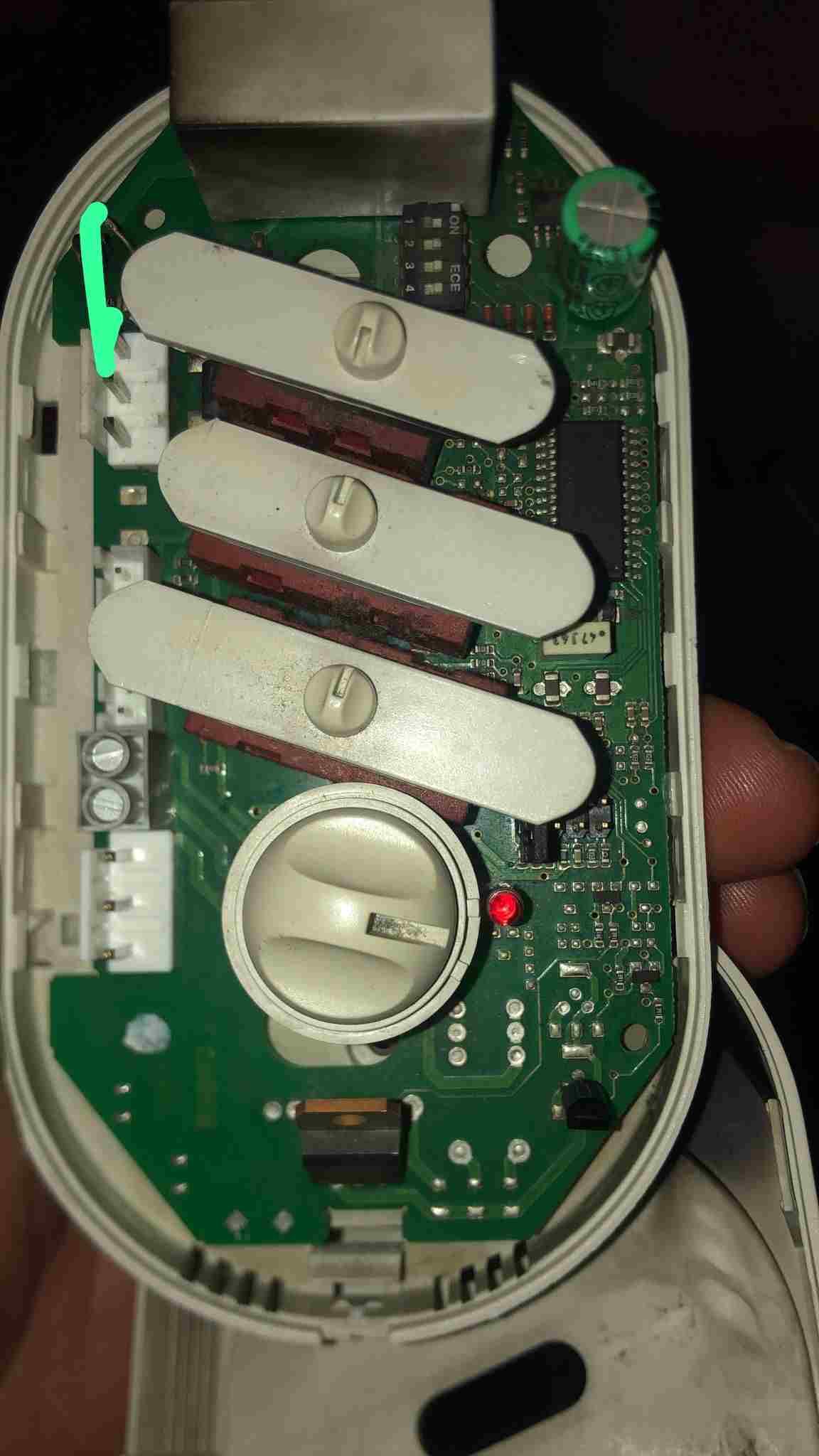 Buongiorno a tutti i tecnici e gli appassionati e buon week-end. Scrivo per chiedere aiuto per quanto concerne un condensatore mancante in un termostato evoluto Ferroli di cui allego immagini. Purtroppo non riuscendo a reperire la foto dello stampato o uno schema di riferimento non riesco a capire come sostituire questo componente mancante che evidenzio nella foto. Qualcuno può aiutarmi a capire se è possibile reperire i valori del condensatore mancante in modo da poterlo sostituire? Grazie mille in anticipo a chiunque possa e voglia aiutare. -